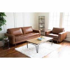 Top 10 🛒 Sofa Sets Baxton Studio Venza Walnut Wood Black Faux Leather 3 Piece Livingroom Set 👍