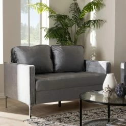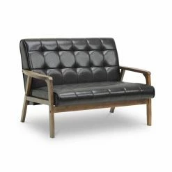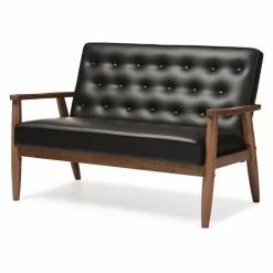 Best Pirce ๐ Loveseats Baxton Studio Venza Walnut Wood Black Faux Leather 2 Seater Loveseat ๐