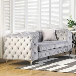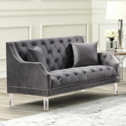 Buy ๐ Best Master Furniture Loveseats Frieda Tufted Velvet Upholstered Loveseat, Grey ๐