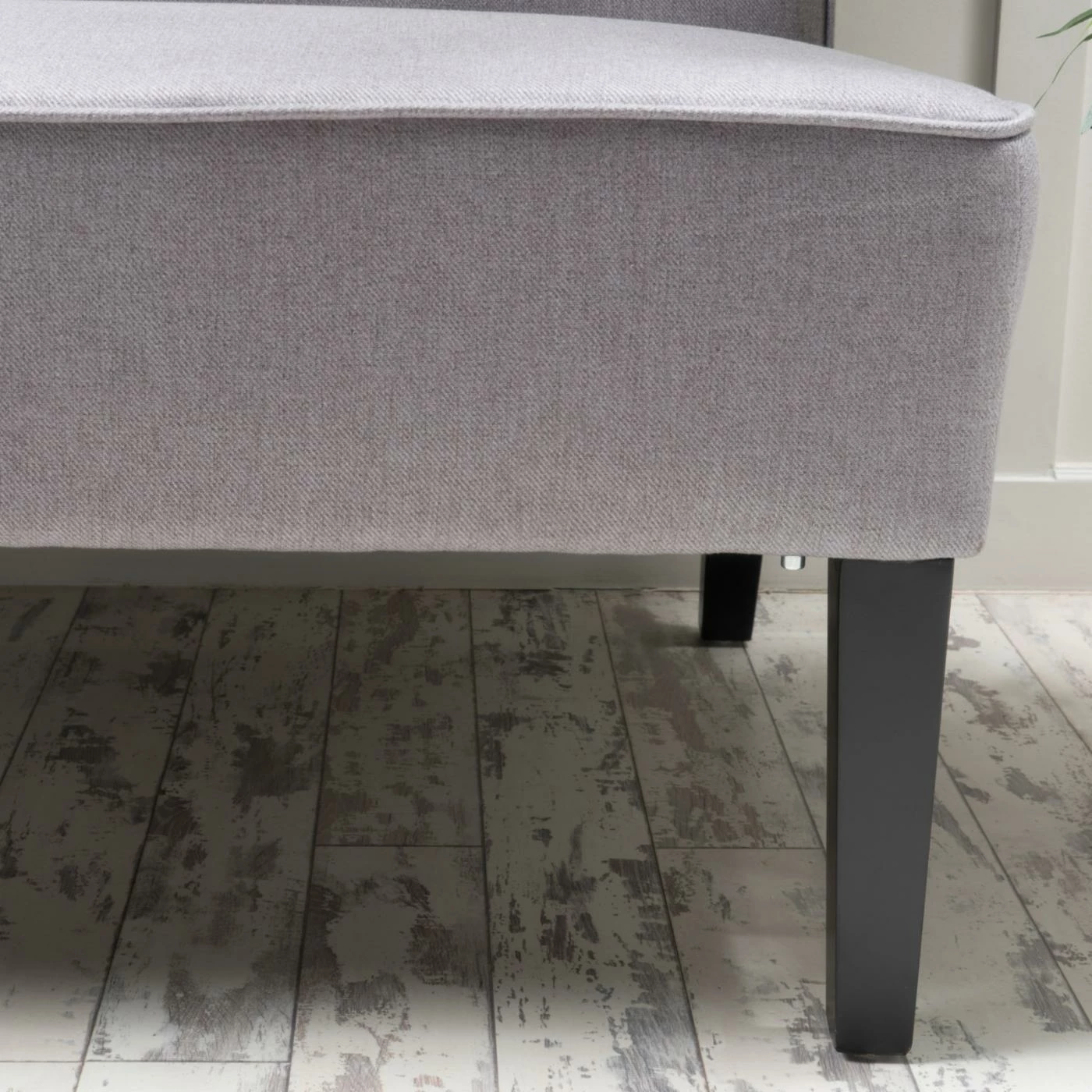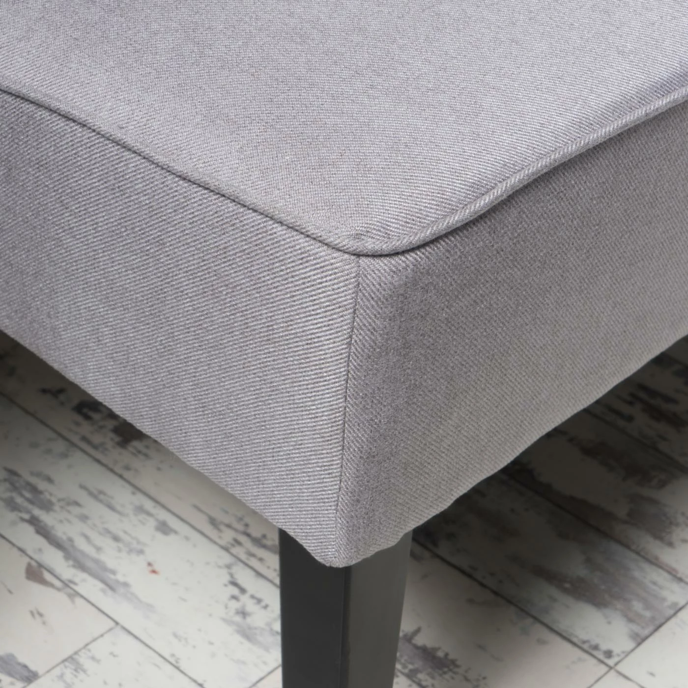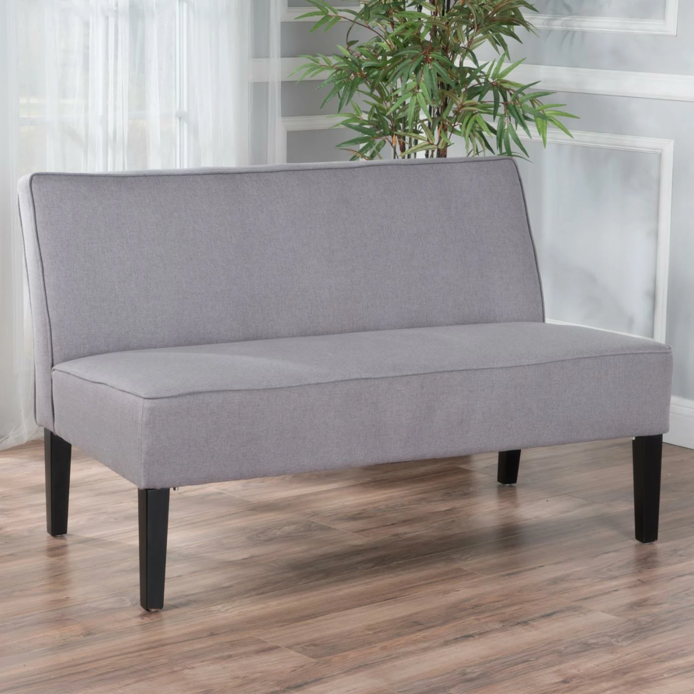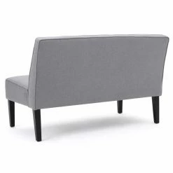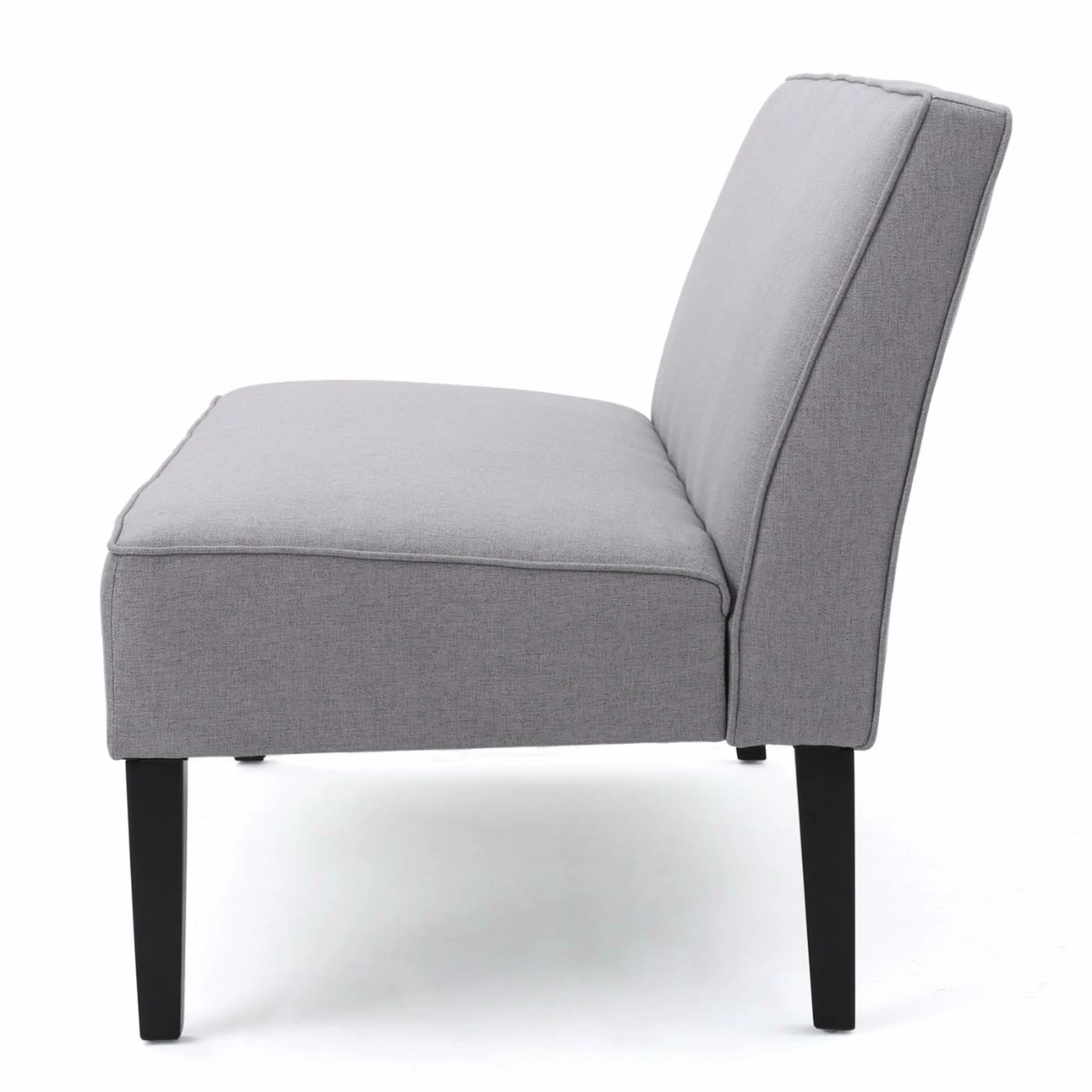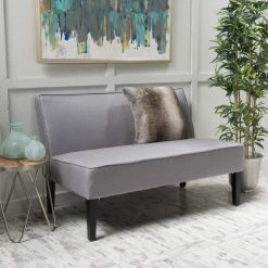 The Walther Fabric Loveseat features fabric upholstery in your choice of available color, while piped seams bring it a clean and contemporary look. This armless loveseat features a thick padded seat and cushion to ensure maximum comfort. Black wood legs bring it a bold, dramatic pop.