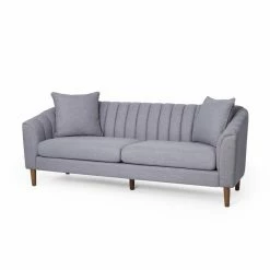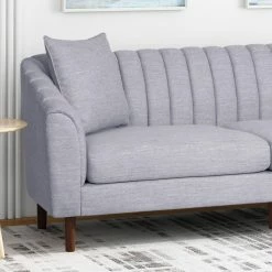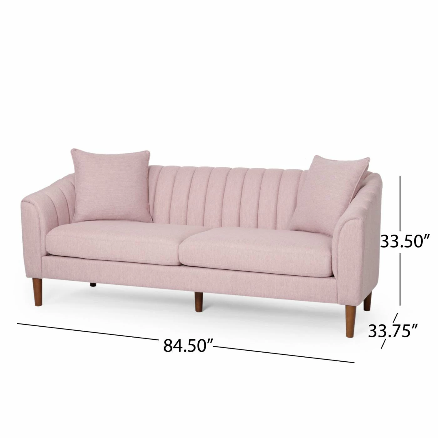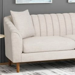 Bring sleek, sophisticated style to your home with the Natasha Contemporary Sofa. This low profile sofa features vertical channel stitching along the seat back, giving the sofa a plush look. Gently curved arms provide comfort and support. Slim, rubberwood legs in a dark brown finish complete the look.