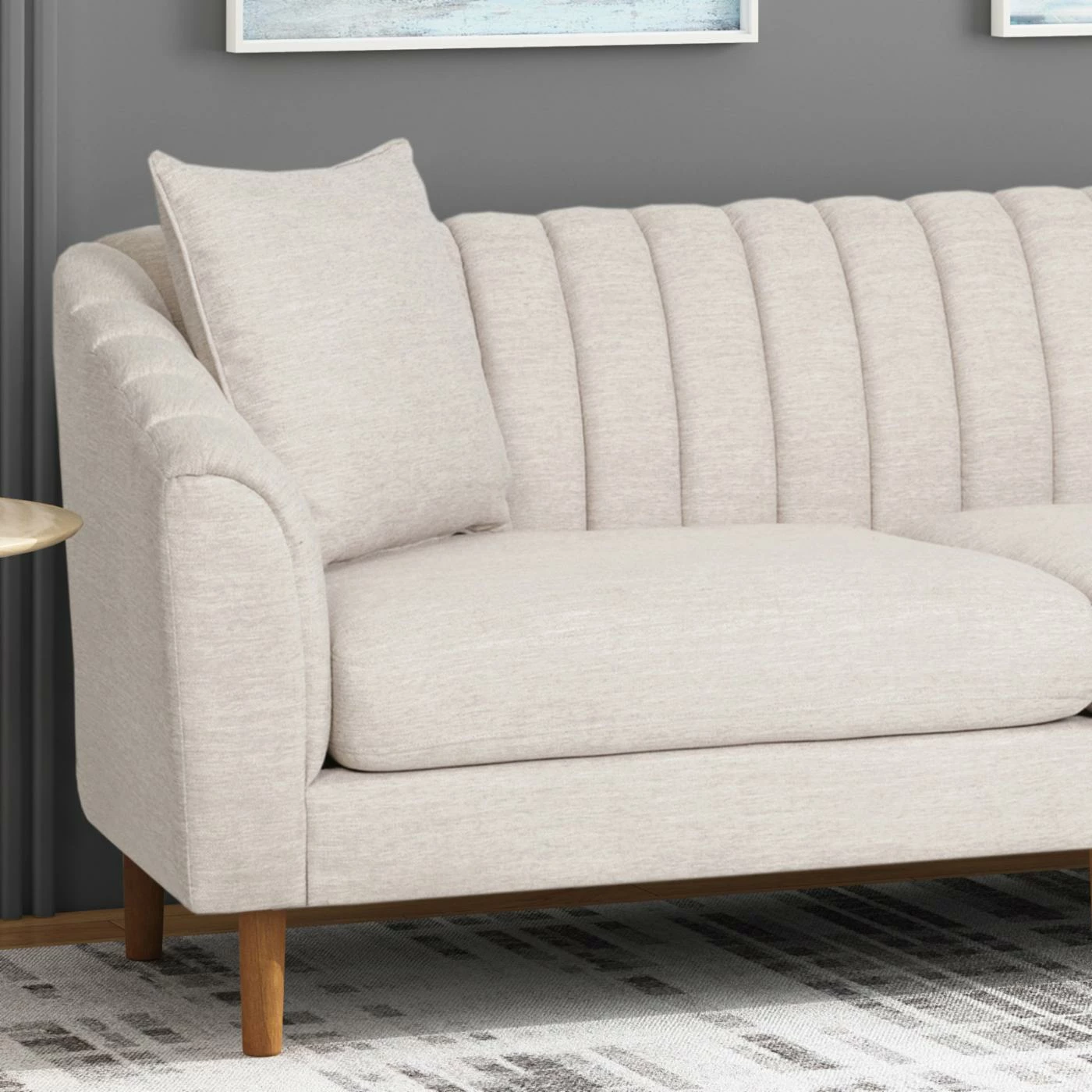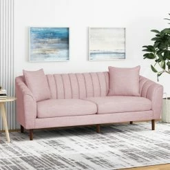 With its clean lines and contemporary design, this sofa is sure to elevate the style of your home. Two matching accent pillows are included. Add more throw pillows or blankets to play with different textures and add some depth to the piece.