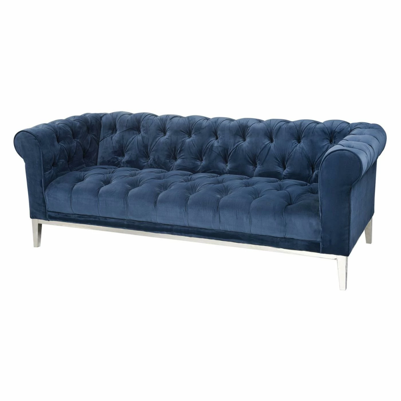 With its button tufted detailing and classic rolled arms, the ELK Lighting Sophie Sofa makes an elegant focal point for any traditional or transitional seating area. Navy velvet upholstery and foam padding allow the sofa to feel as luxurious as it looks. Completing the design is a heavy-duty stainless steel base that has been polished to a mirror-like shine.