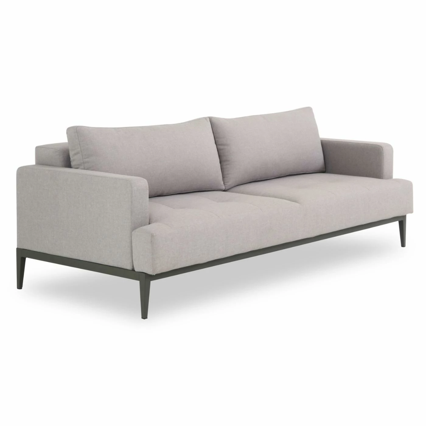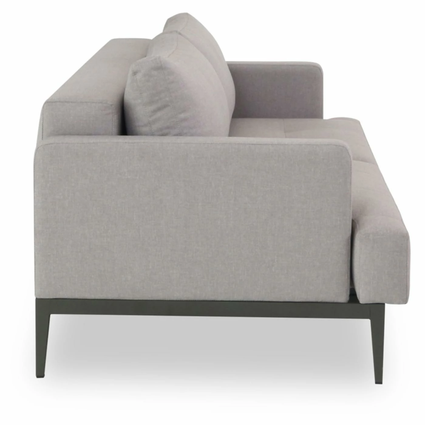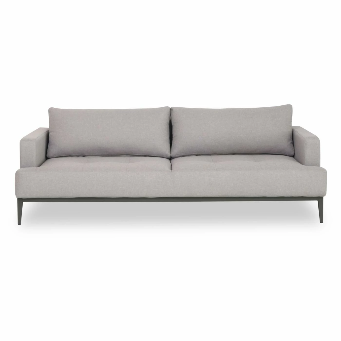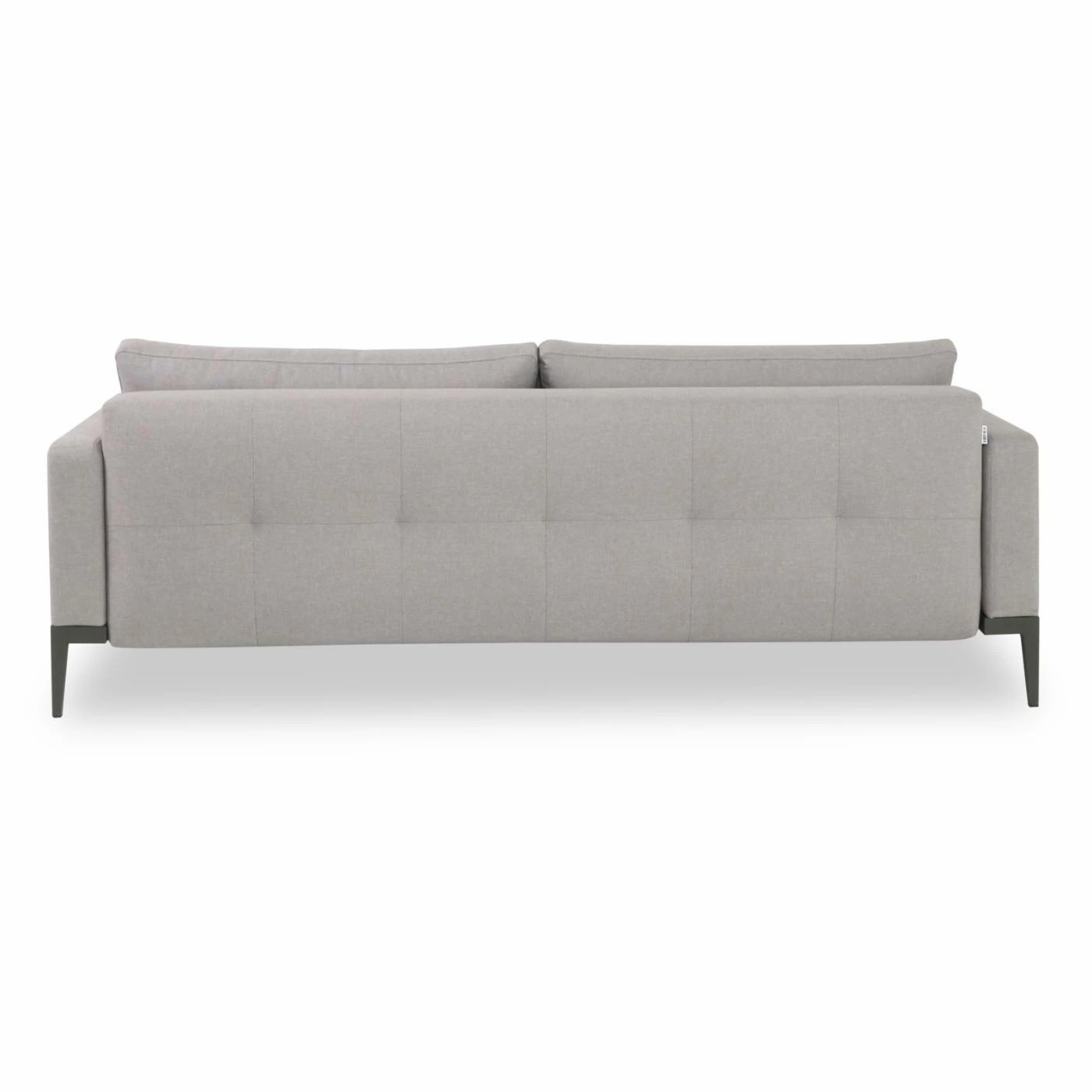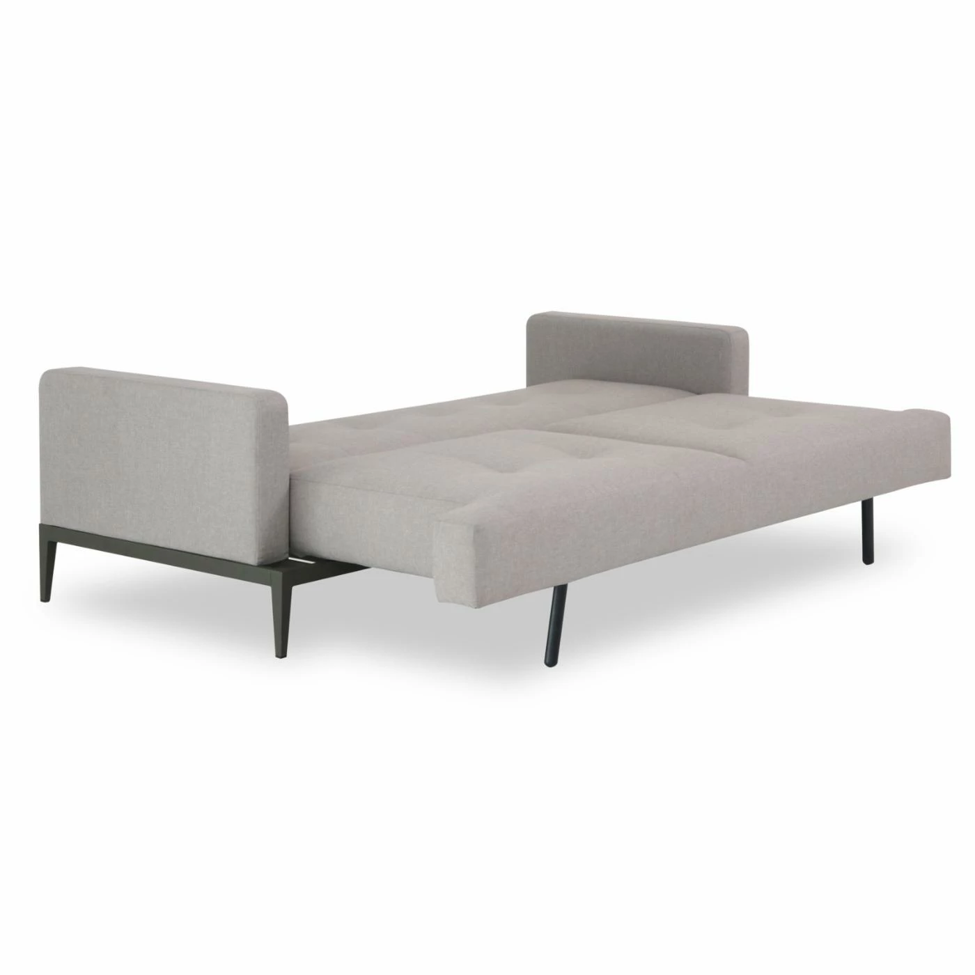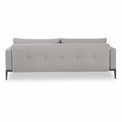 You’d never guess the tailored J&M Furniture JK059 Sofa converts into a comfortable sleeper, but it does. As a sofa, it features plump, removable back cushions, track arms, and a T-shaped seat cushion. A few moves later and you have a comfortable bed for two. This sofa bed is upholstered in smooth, light gray fabric and sits on a metal framework in dark gray.