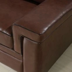 Provide your new living room or dining room with a comfortable spot for up to two with the Abbyson Leo Top Grain Leather Loveseat. This love seat has a wide frame that’s padded thoroughly with dense foam. Handsome top-grain leather upholsters the piece, accented with welted seams. Kiln-dried hardwoods construct the piece, perched on dark brown block feet. The leather has an alluring brown tone to match. Assembly required.