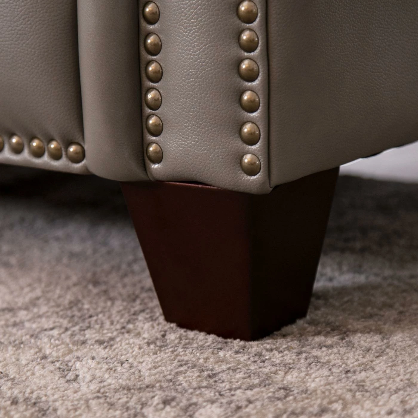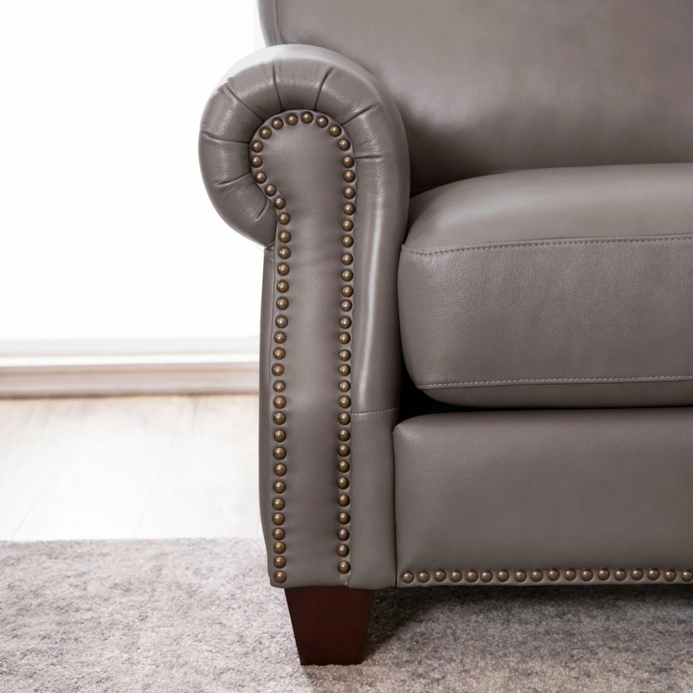 Perfect for enjoying drinks with a loved one, intimate conversations, reading a book, or just watching a movie, the Abbyson Lister Grey Leather Loveseat adds beauty and comfort to your living room. Its transitional style and top grain leather upholstery in gray complements any style, giving you a piece that’ll easily integrate into your existing dΓ©cor. Strong and durable, the kiln-dried wood frame and high-resiliency 2.0-density foam cushioning wrapped in a Dacron fill is made to stand up to years of use while simultaneously providing a supportive and comfortable place to sit. Decorative stud work adds a sophisticated touch and brings the entire look together.