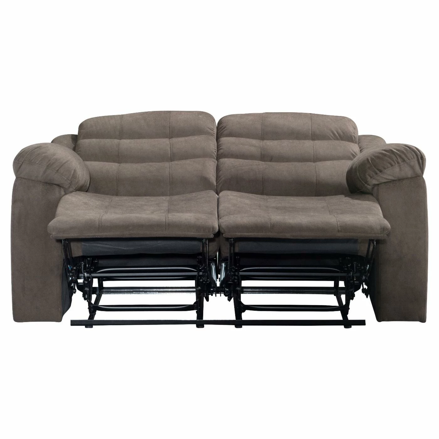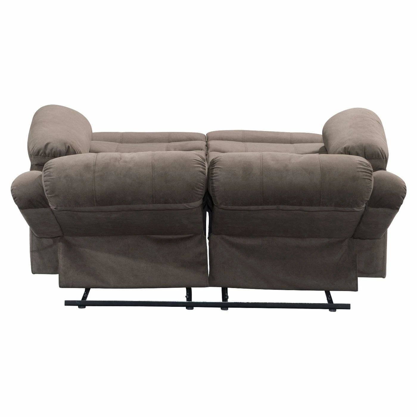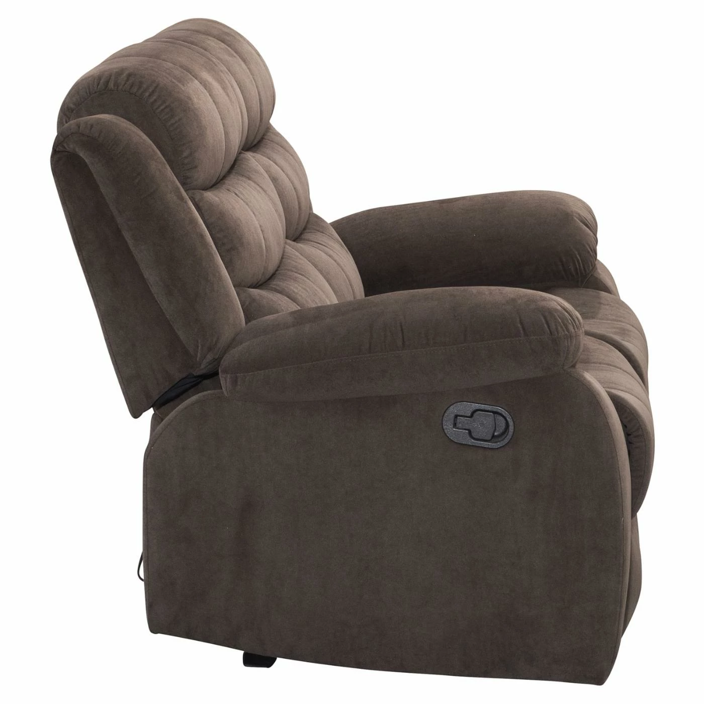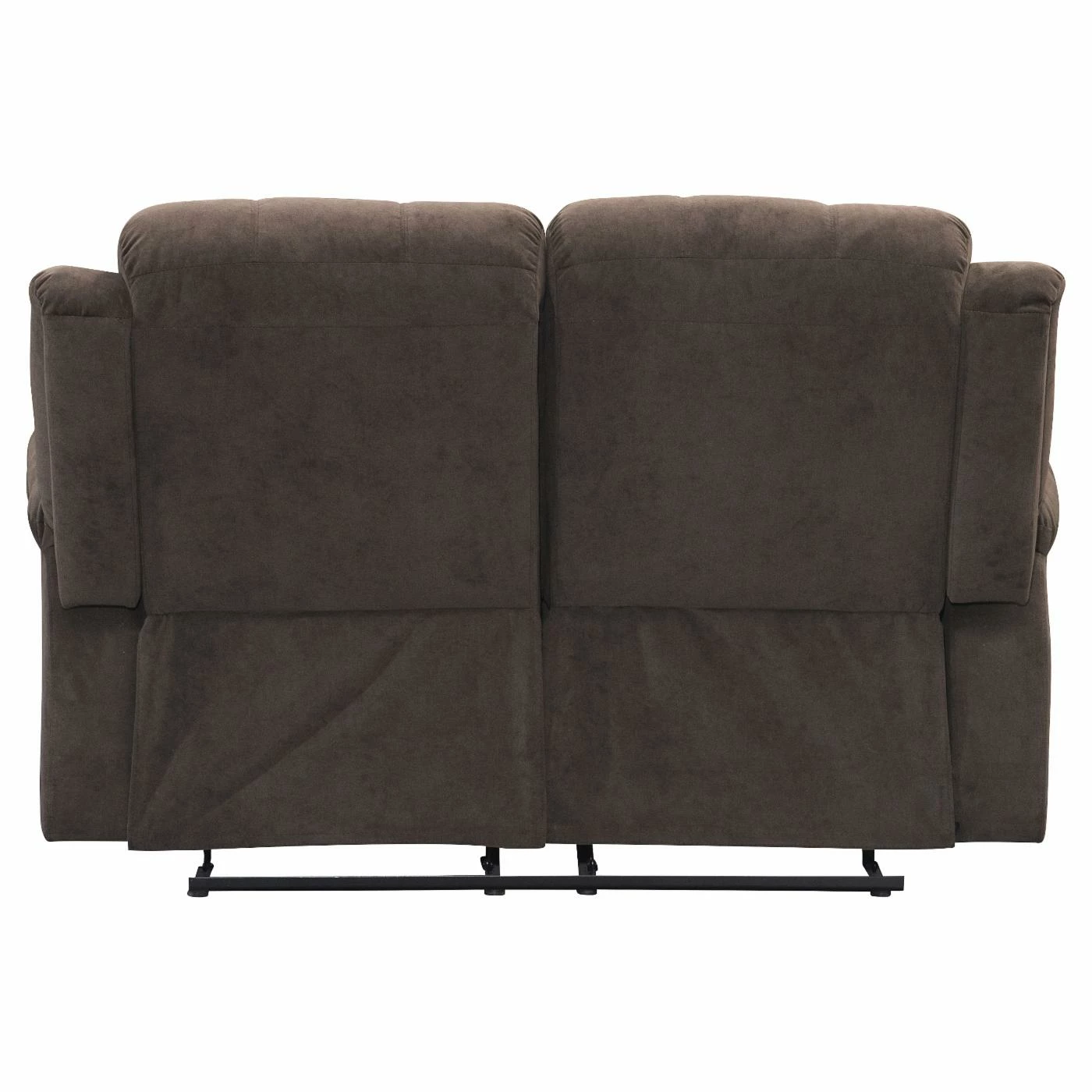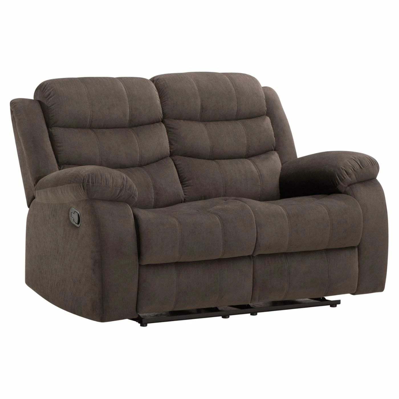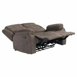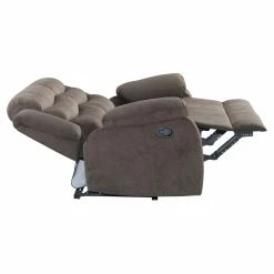 The Acme Furniture Cuinn Velvet Loveseat helps add comfort to every seat in your home. This loveseat features two seats, each with a side-mounted lever for instant, total reclining. The frame is made from wood with a metal mechanism and comes padded thoroughly with foam. Deep brown velvet upholsters the piece, accented with rolled backrests.