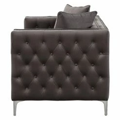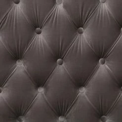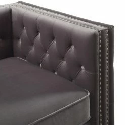 Shelter arms and deep button tufting make the Acme Furniture Gillian II Loveseat a luxurious designer addition to your living space. Dark gray velvet upholstery and two matching pillows make this loveseat impeccably comfortable. It’s detailed by double rows of silver-tone nail head trim and sits on sleek metal legs in silver to match.