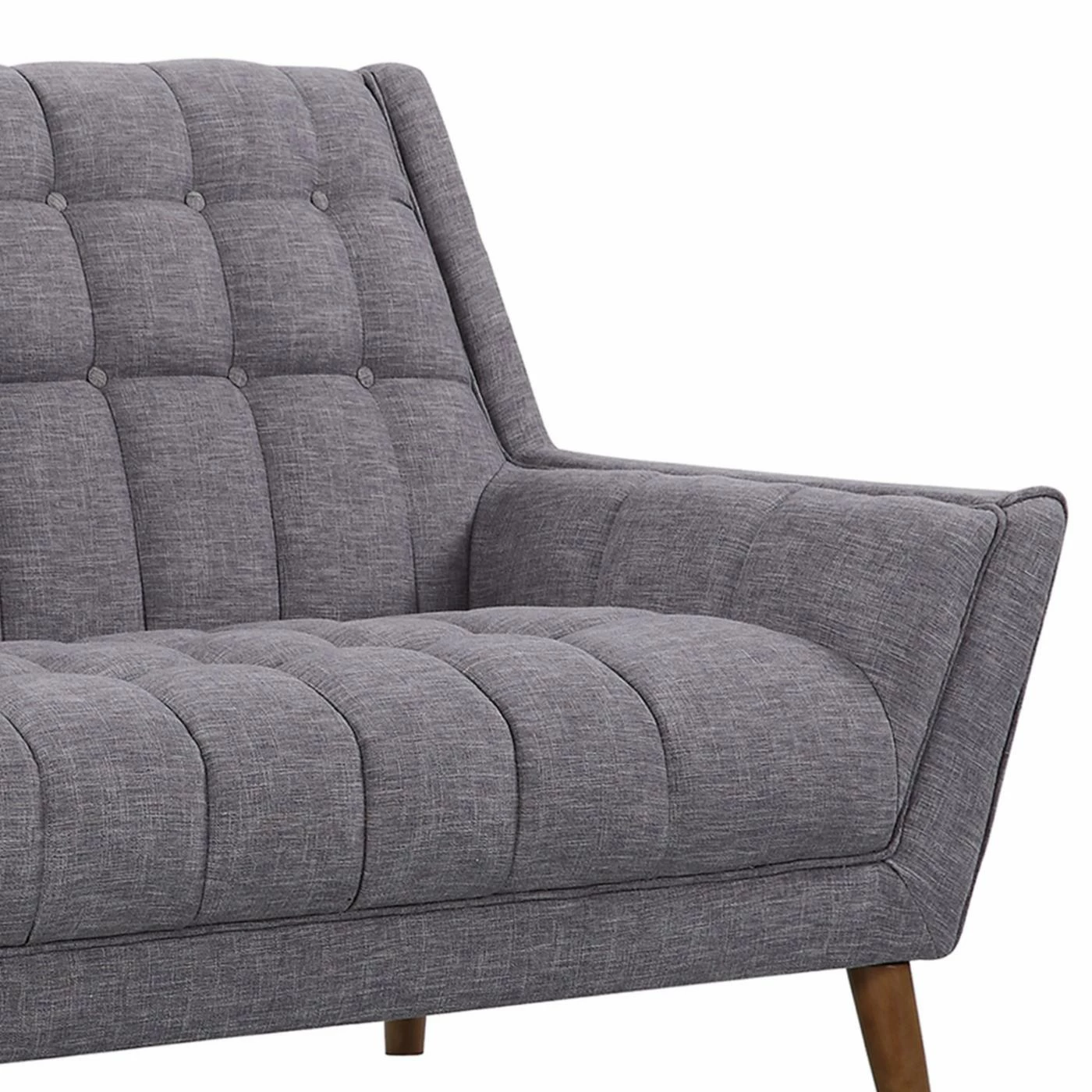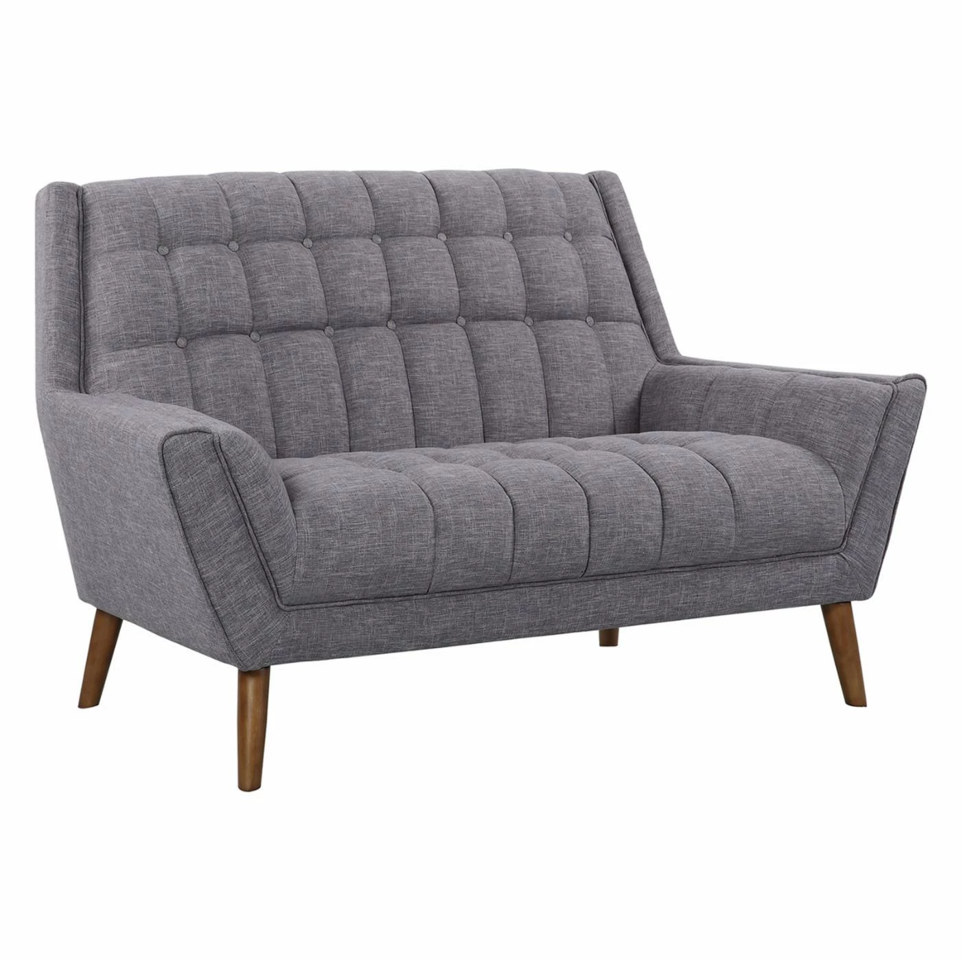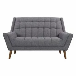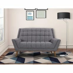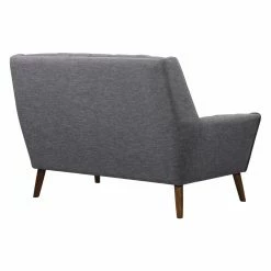Compact, chic, and comfortable, the Armen Living Cobra Loveseat enhances your home dΓ©cor with a distinctive, mid-century modern flair. Plushly cushioned with button-tufted squares, this cozy, fabric-upholstered loveseat offers a cozy place to cuddle and works beautifully in smaller spaces. Flared-out arms and tapered walnut wood legs add artful lines and a welcoming appeal to this stylish piece of furniture. Offered in your choice of available color option. Pair with other pieces in the Cobra collection for a coordinated design.