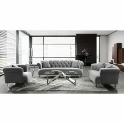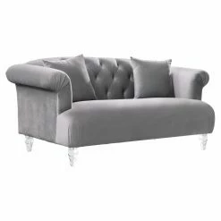 Bring the fashion of mid-century modern design to your home with the Armen Living Elegance Tufted Loveseat. Velvet upholstery covers plush and luxurious cushions and a durable wood frame to give you a comfortable loveseat thatโs built to last. Its button-tufted back and clear acrylic legs perfectly fuse modern and classical design elements to give you a piece that complements most homes handsomely.