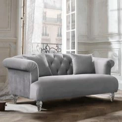 Bring the fashion of mid-century modern design to your home with the Armen Living Elegance Tufted Loveseat. Velvet upholstery covers plush and luxurious cushions and a durable wood frame to give you a comfortable loveseat thatโs built to last. Its button-tufted back and clear acrylic legs perfectly fuse modern and classical design elements to give you a piece that complements most homes handsomely.