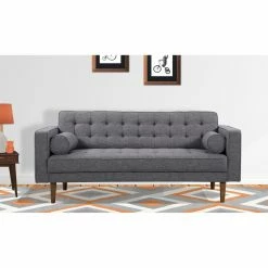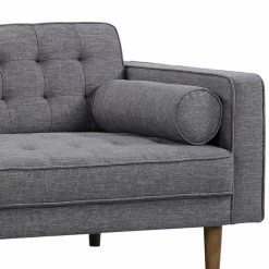 The Armen Living Element Loveseat updates a classic look with contemporary appeal. Infused with mid-century modern aesthetics, this sophisticated loveseat boasts a button-tufted bench seat for sleek tailoring. Matching bolster pillows and tapered walnut legs deliver the perfect finishing touch to this wood-frame loveseat that’s softly upholstered in a tasteful, neutral gray cloth. Pair it with other pieces in the Element collection for a look that’s chic and coordinated.