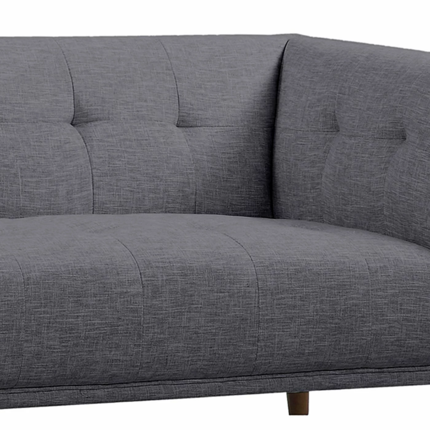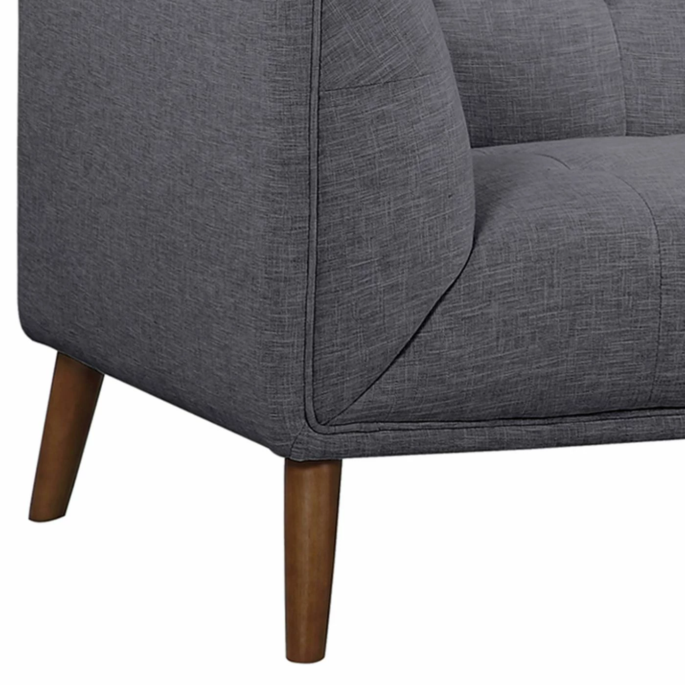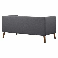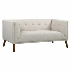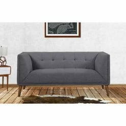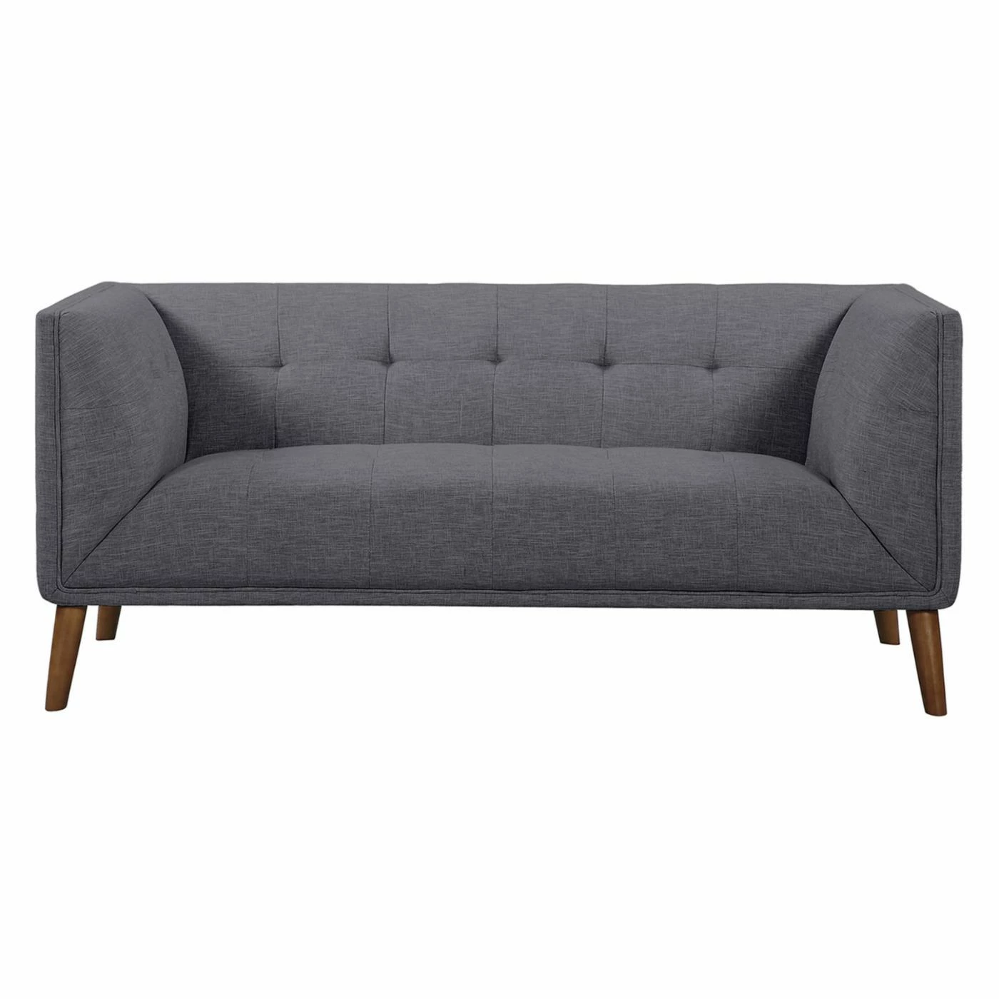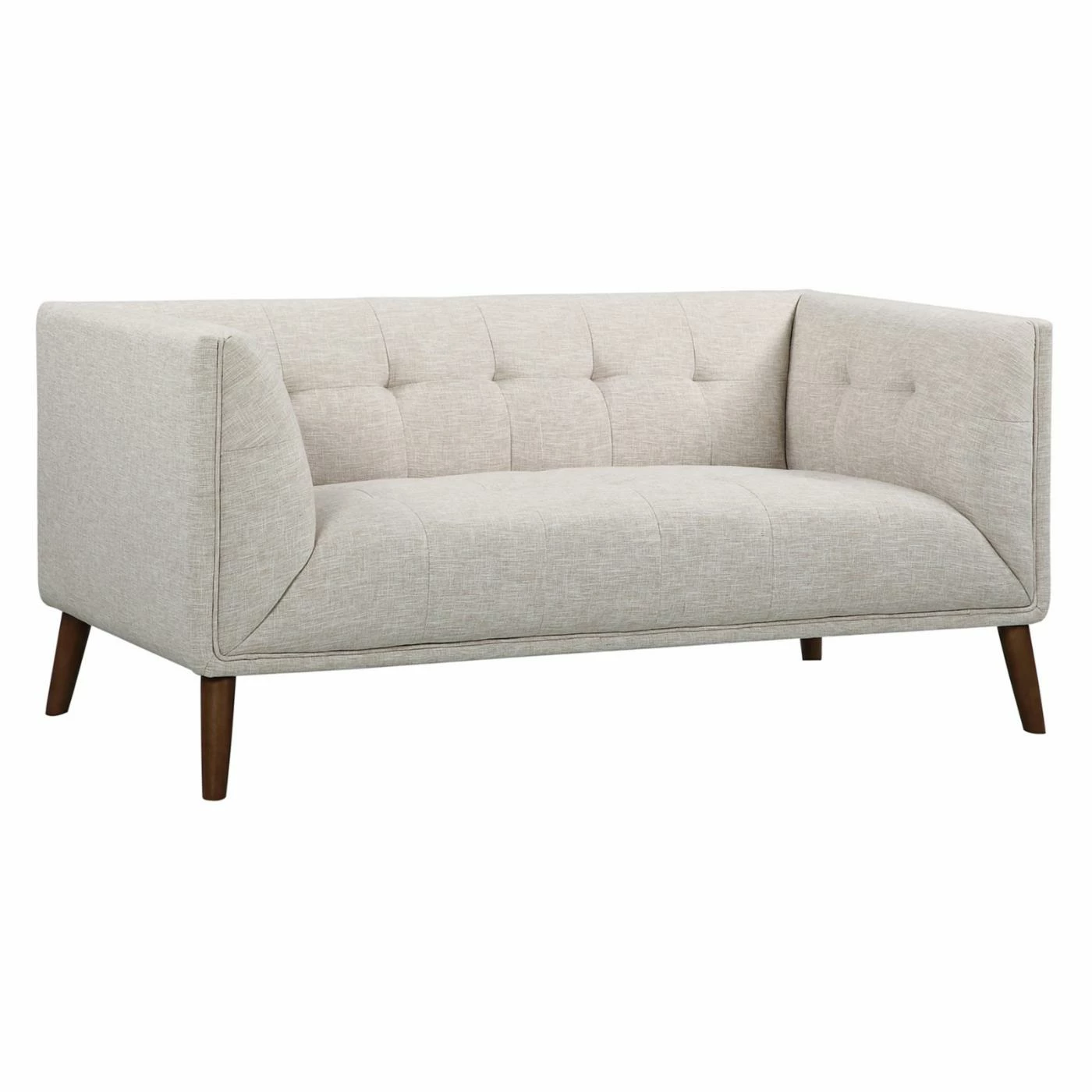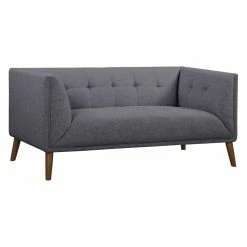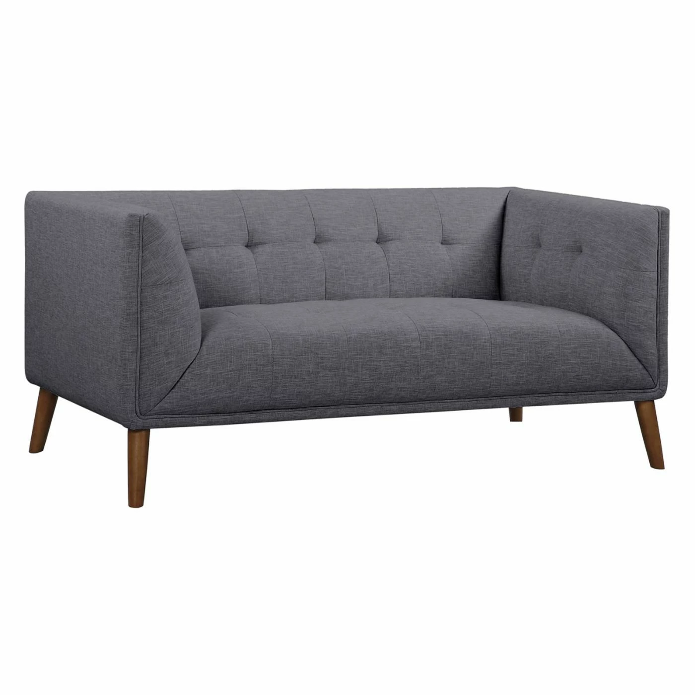 The even arms and seat back give the Armen Living Hudson Loveseat a sleek, rectangular design, boosting your dΓ©cor with a compact, streamlined style that works beautifully in small and large spaces alike. Simple button-tufted fabric upholstery, offered in your choice of available color option, gives it a smartly tailored profile that’s chic and sophisticated. Finished with tapered walnut legs, this mid-century modern-influenced piece pairs perfectly with other furniture in the Hudson collection for a complete room design.