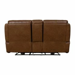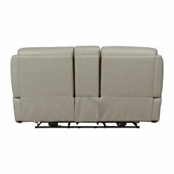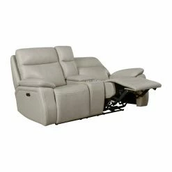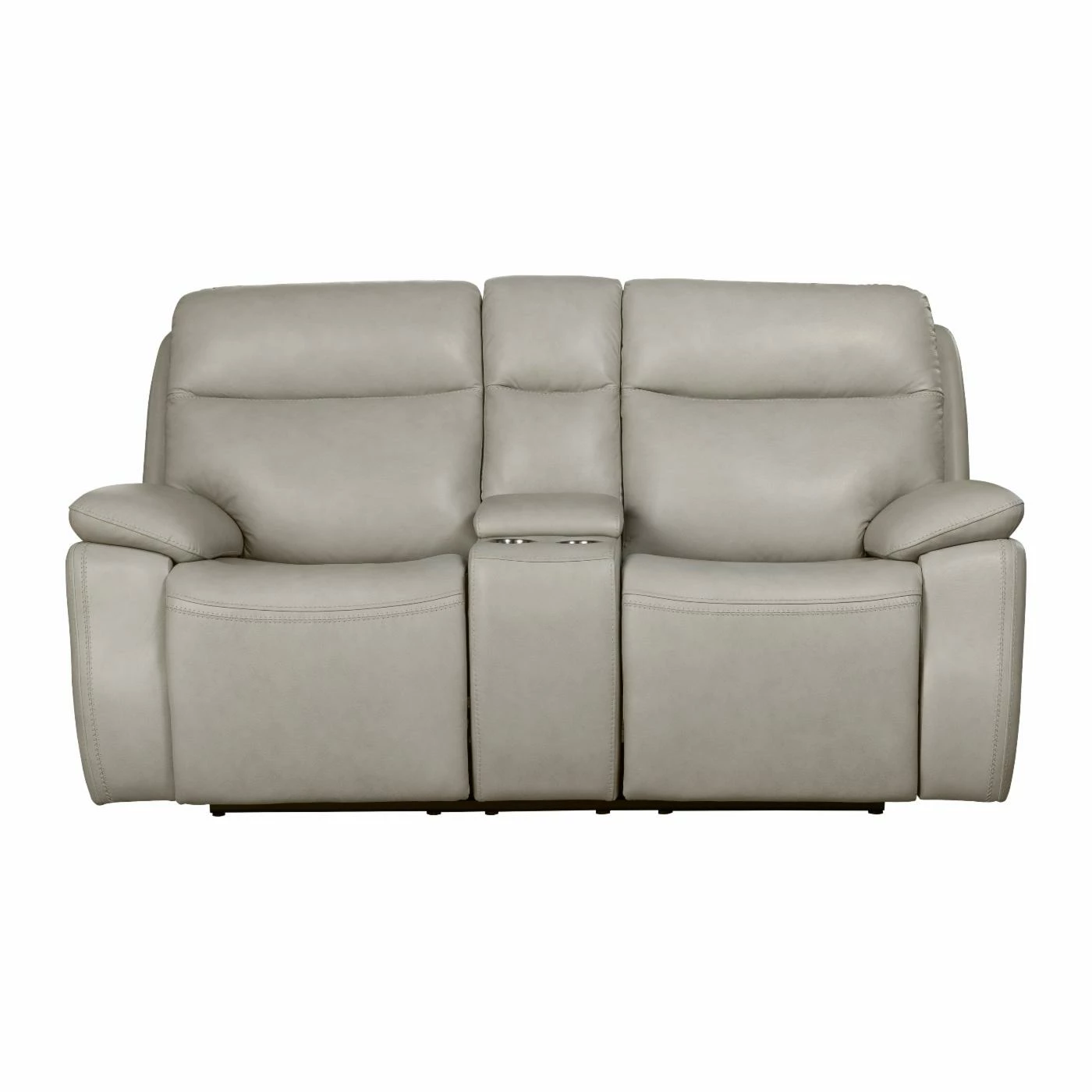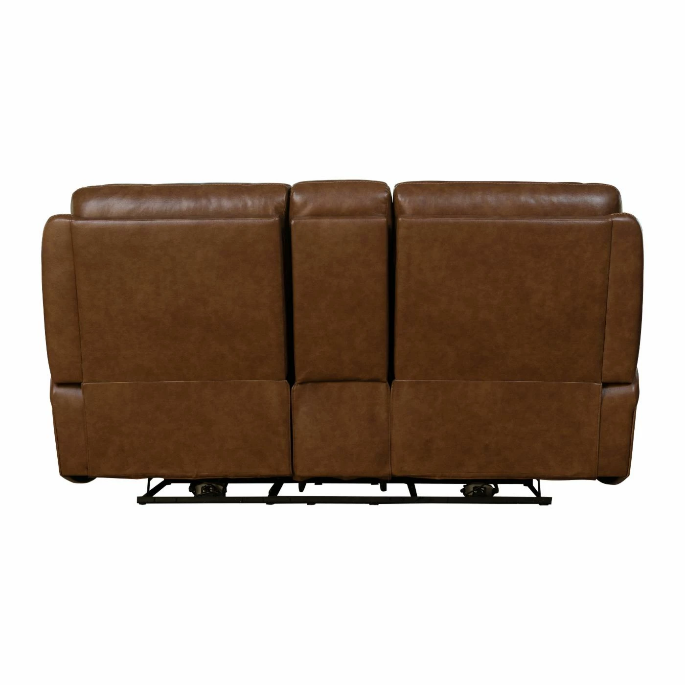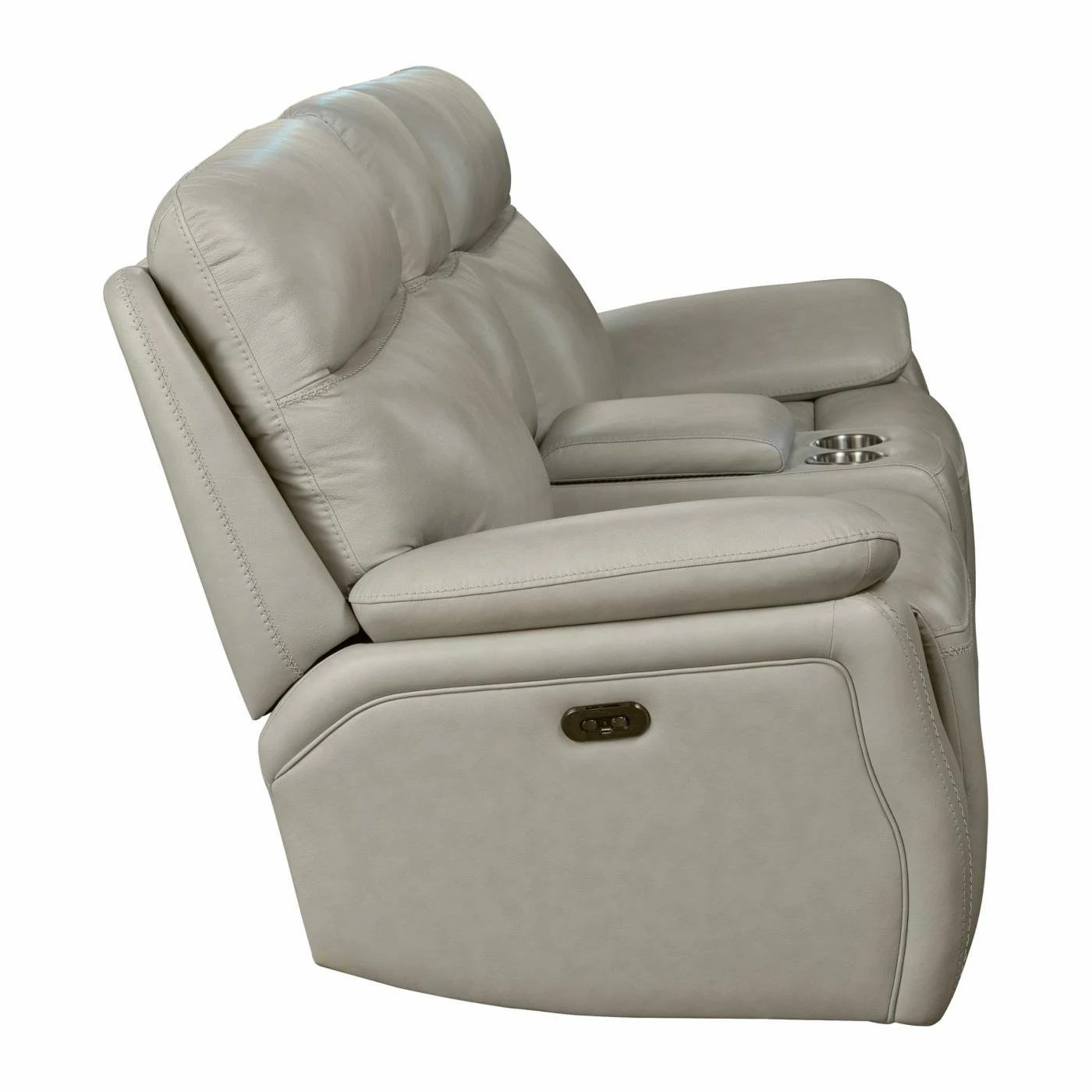 Match your modern sofa with the Barcalounger Micah Console Loveseat for an additional seating option with plentiful user comfort. The two wide seats each boast a powered recline function and headrest, controlled by side-mounted buttons. Plush medium-density foam pads the seats, bolstered by pocket-coil springs in the seats for support. Between the seats is a lift-top console storage area for keeping remotes and two cup-holders for your favorite beverages. Lush leather-match upholstery tops the piece; choose among the available color options. Solid hardwood and steel constructs the frame.