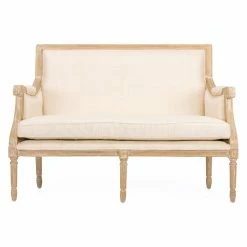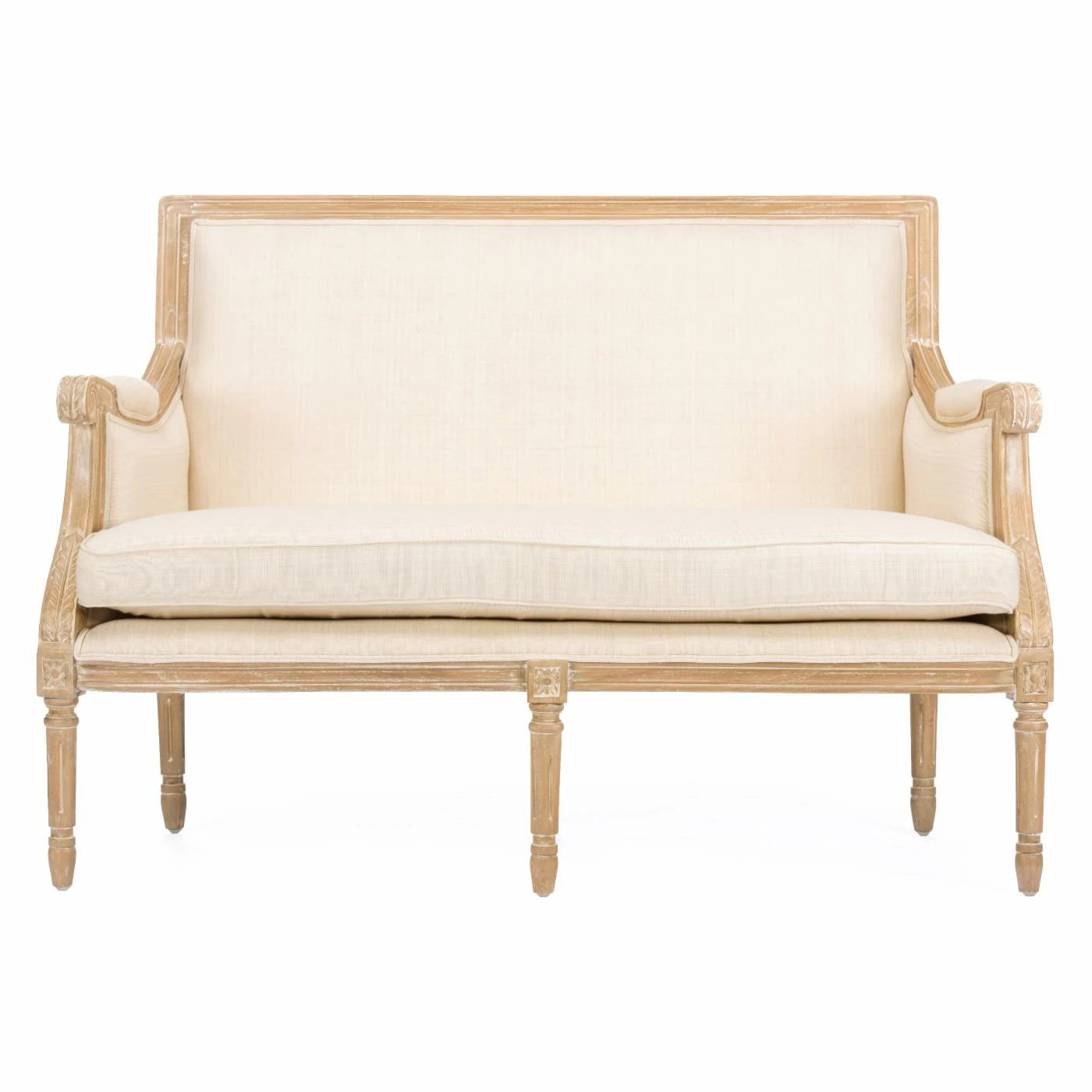 Create your own French Provencal style with the Baxton Studio Chavanon Loveseat. This settee style loveseat has a straight back and tall sides with curved and upholstered arms. The frame is made of mindi wood and comes in a natural, distressed finish with white streaking that enhances each detail. Beige cotton upholstery features welted trim for a tailored look. Six turned and tapered legs add even more detail.
