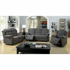 The Furniture of America Bristow Recliner Loveseat was made for ultimate comfort, whether you’re napping, channel surfing, or just sitting down with the family. This cozy loveseat has a sturdy wooden frame and is covered in ultra-soft chenille upholstery that’s available in your choice of color. Both seats are equipped with reclining mechanisms and easy-pull levers so you can kick back with ease. The back and armrests feature extra padding for a cushy seat you practically melt into.