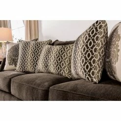 Your new loveseat may only be one part of your living room-makeover to-do list, but the Furniture of America Langston Contemporary Chenille Loveseat is quickly going to be a major player in your new style upgrade. This loveseat combines glamour with flexibility of style. The straight arms and high back add a modern feel, but the pillow-style back and matching accent cushions give it a casual, approachable style. The exterior is covered in super-soft chenille fabric as nailhead trim lines its silhouette. High-density foam is supported by a frame of solid hardwood that’s designed for years of daily love and attention. Choose from available size and color options. Assembly required.