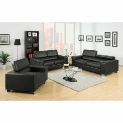 Sleek and contemporary, this Furniture of America Lawrence Bonded Leather Match Loveseat is the perfect seating choice for your updated space. Clean lines are emphasized by rich black leather and bonded leather upholstery. Pneumatic gas lift headrests provide the ultimate in comfort. Brilliant chrome legs complete the look.