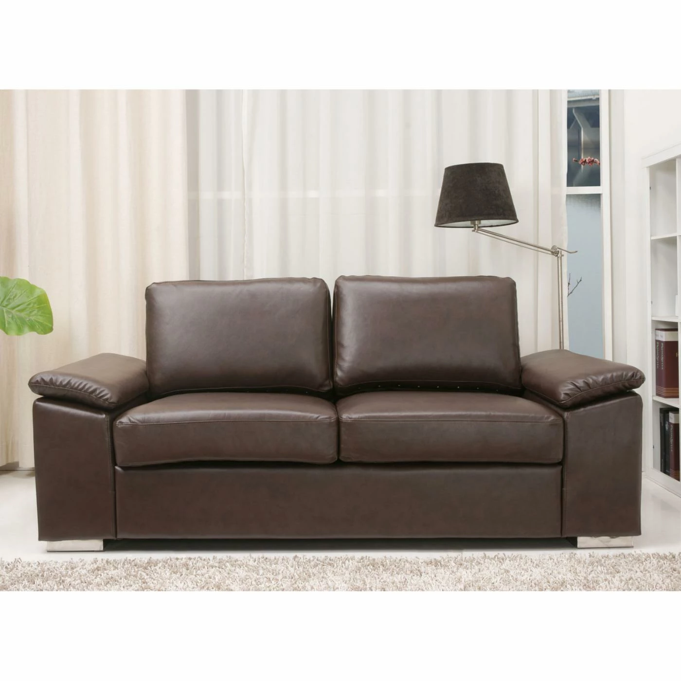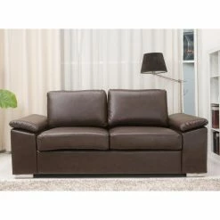 Grant yourself some much-needed comfort with the addition of the Gold Sparrow Hampton Leather Loveseat to your living room or basement furniture set. This wide loveseat comes with the frame and cushions stuffed fat with high-density foam for an ideal combination of structure and softness. The frame is built from tough, thick wood solids with subtle block feet. Upholstering the piece is a rich artificial leather fabric. Choose from available color options.