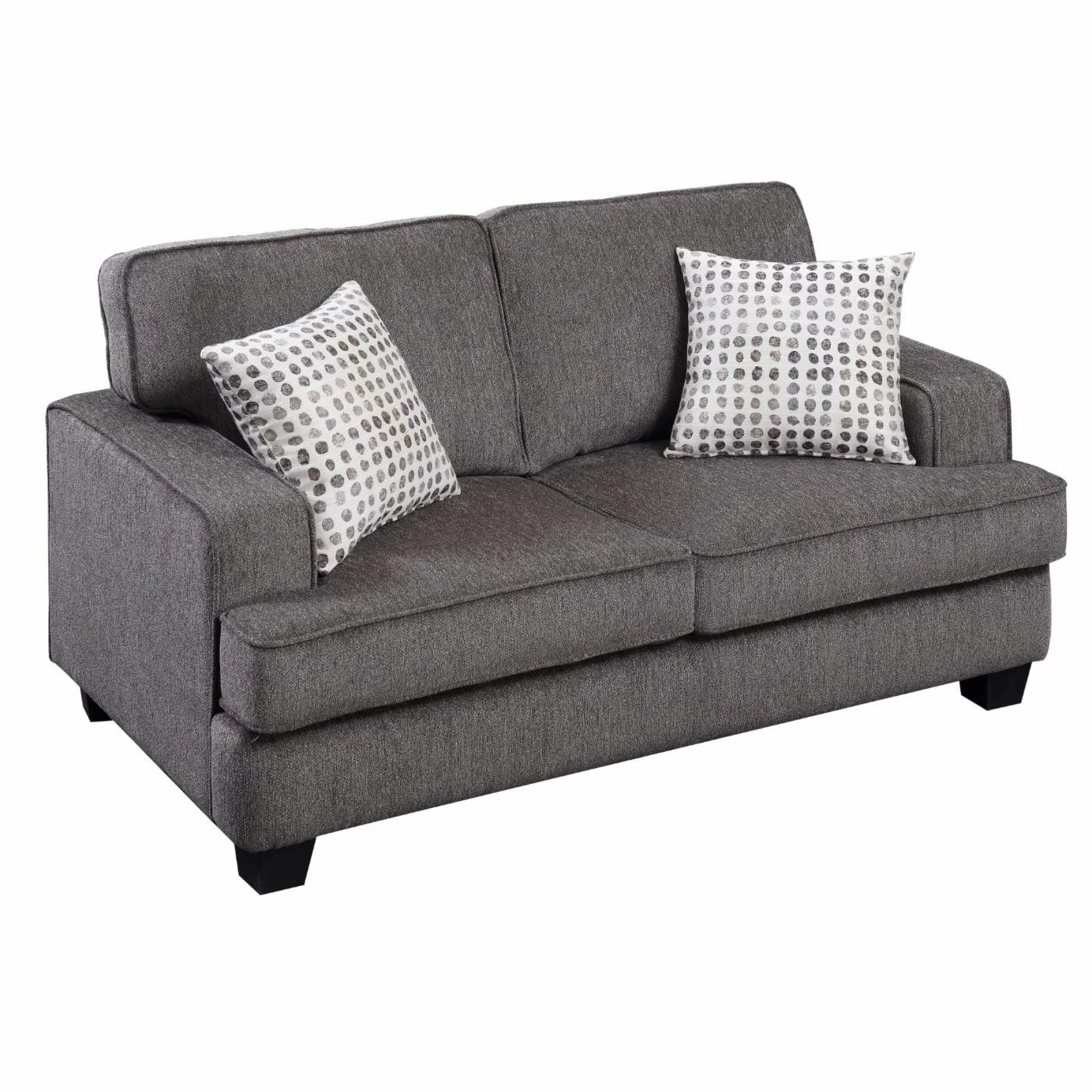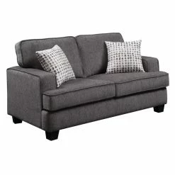 The perfect piece for just about any space requiring more seating, the HN Home Austin Transitional Loveseat – Ink a transitional look that will work with any space. Sinuous spring seats are topped with comfortable cushions featuring pocket coil springs are individually wrapped with foam and fiber batting. Split-style back cushions are generously stuffed with fiber. The entire sofa is upholstered with easy-care polyester fabric in a rich mottled gray color.