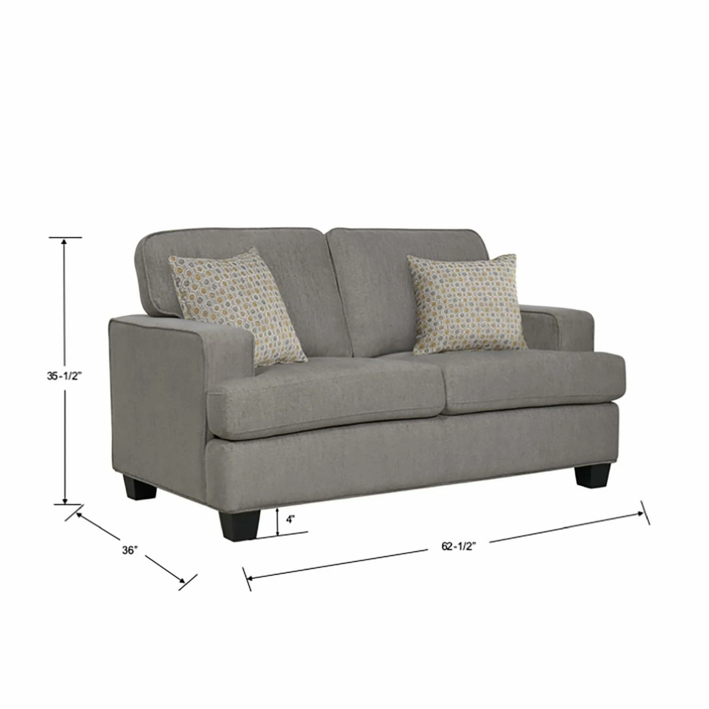 With simple style and classic appeal, the HN Home Austin Transitional Loveseat a transitional look that will work with any space. Sinuous spring seats are topped with comfortable cushions featuring pocket coil springs are individually wrapped with foam and fiber batting. Split-style back cushions are generously stuffed with fiber. The entire sofa is upholstered with easy-care polyester fabric in a versatile classic gray color.