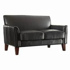 Use any color of pillow or throw to coordinate the HN Home Edinburg Transitional Loveseat in dark brown bicast leather with your existing decor. With removable cushions, this loveseat is built of solid hardwoods for long lasting durability. Cherry-finished legs and a tight back finish the piece. Coordinating items are available to create a complete look.
