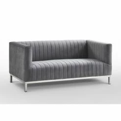 Add glamorous seating for two to any room of your home with the Inspired Home Ronald Loveseat. This loveseat offers rich velvet upholstery with vertical stripe tufting. Metal legs with a chrome finish elevate this contemporary loveseat. Choose from available color options to make it yours. No assembly required.