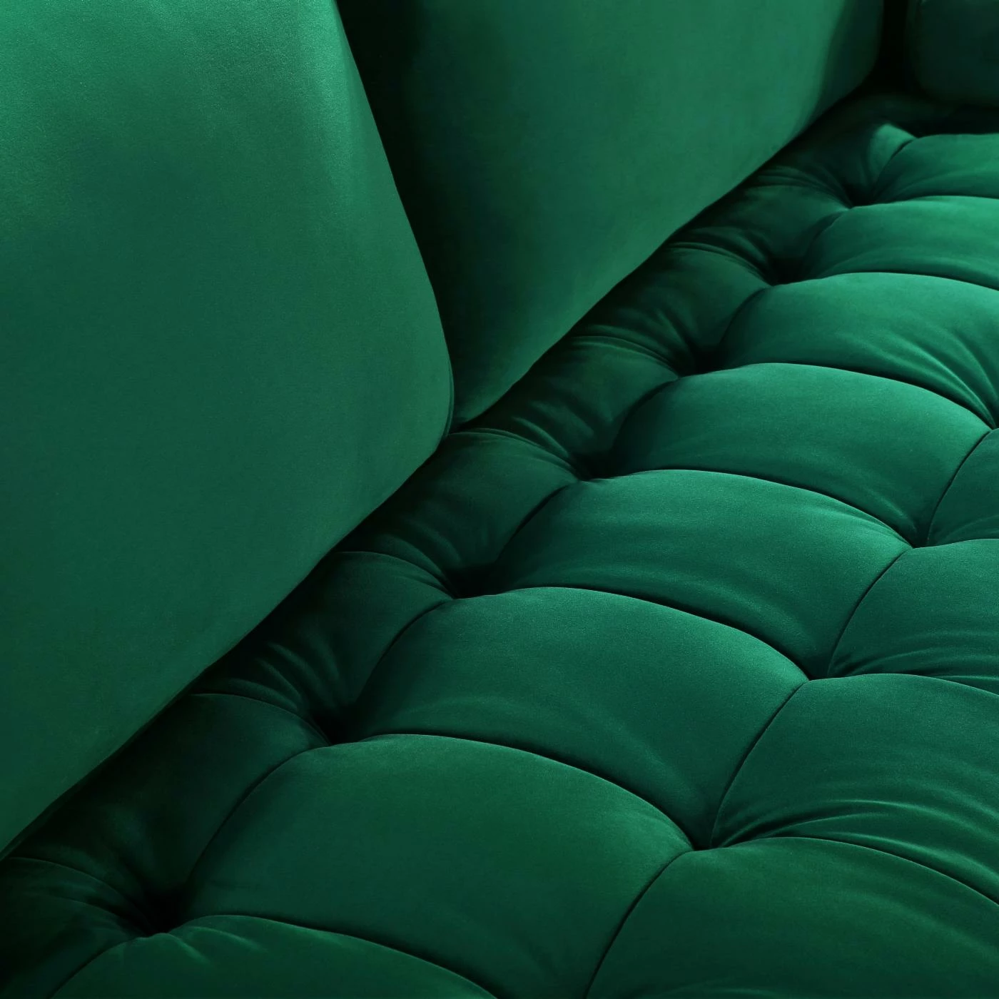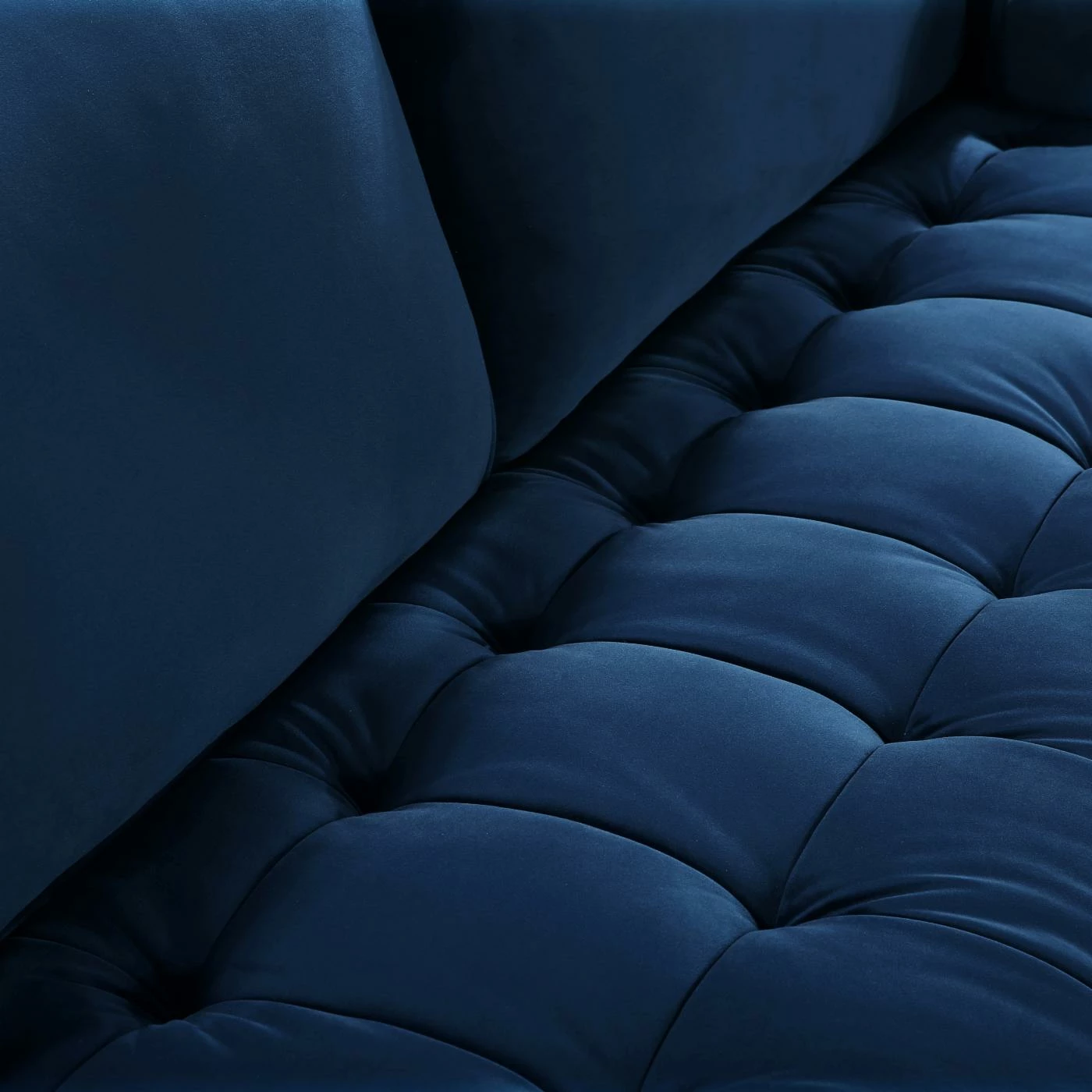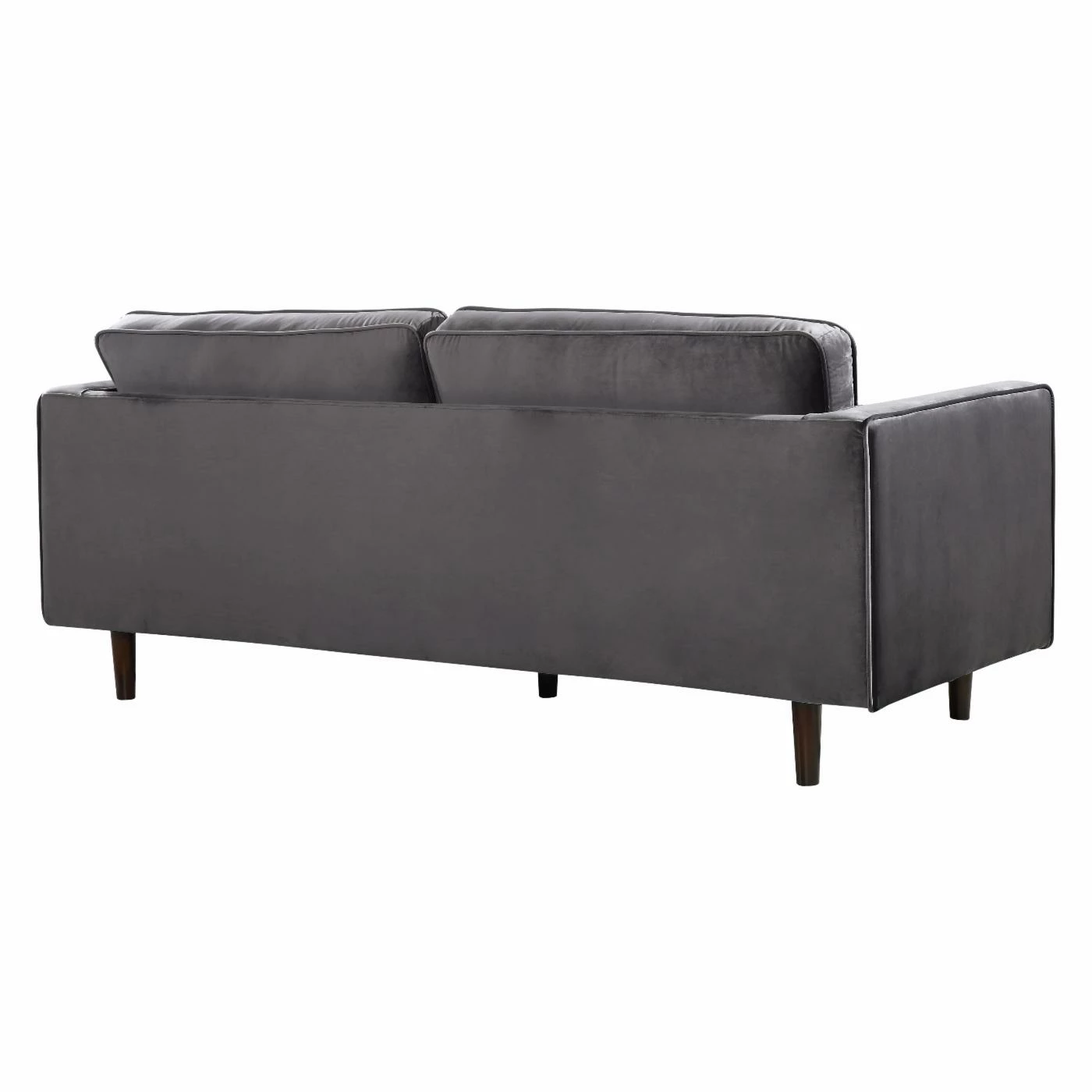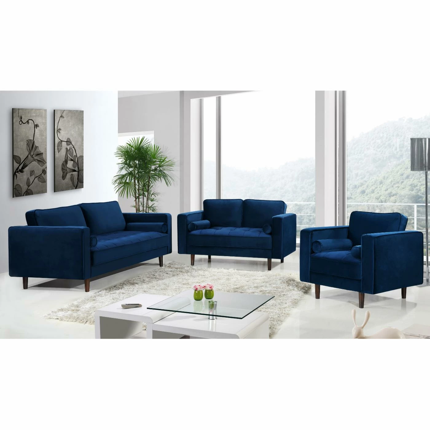 Cozy and inviting, the Meridian Furniture Inc Emily Velvet Loveseat shows just how comfortable modern style can be. Plush cushions upholstered in velvet and two roll pillows create the ideal seat for relaxing after a long day. Deep button tufting and thin wooden legs add a mid-century flair to this contemporary piece. With your choice of available fabric colors, youโll have the perfect loveseat picked out in no time. This item matches other pieces in the Meridian Furniture Inc Emily Collection.