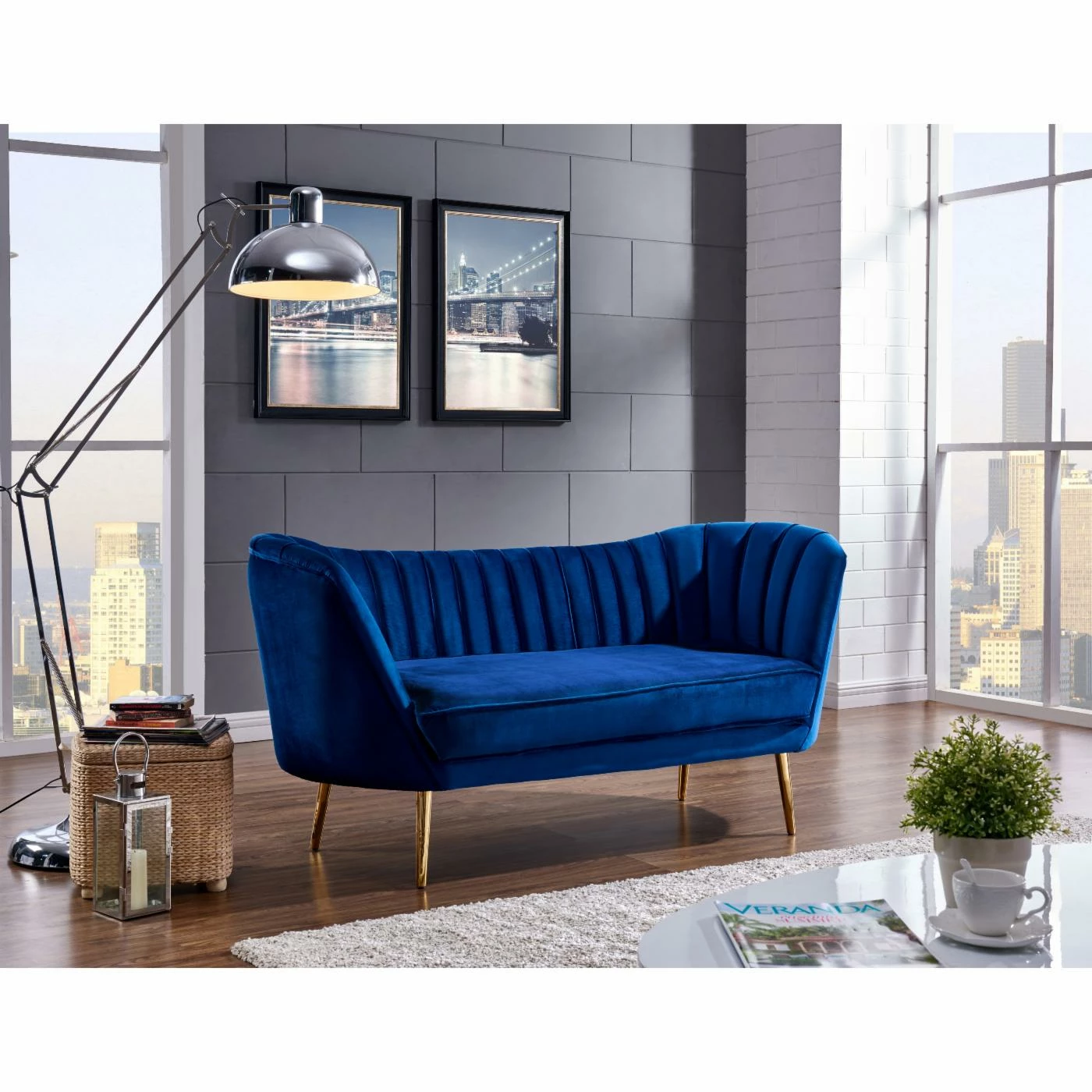 Give your living room a mid-century vibe with the Meridian Furniture Inc Margo Velvet Loveseat. The low, rounded back and arms, beveled tufting, and stainless steel legs finished in gold come together to create an elegant piece that suits both formal and informal settings handsomely. Perfect for relaxing, the robust metal frame and plush cushions are upholstered in soft velvet that comes in your choice of available colors. This item matches other pieces in the Meridian Furniture Inc Margo Velvet Collection.