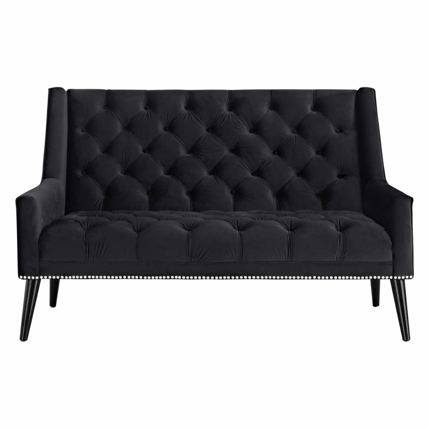The Modway Peruse Velvet Upholstered Loveseat will instantly invigorate your living room with its exquisite design. Featuring plush foam padding, this solidly built loveseat comes upholstered in velvet-textured polyester with luxurious tufted buttons and an elegant nailhead trim. The black wood legs provide sturdy support and are capped with non-marking foot caps.