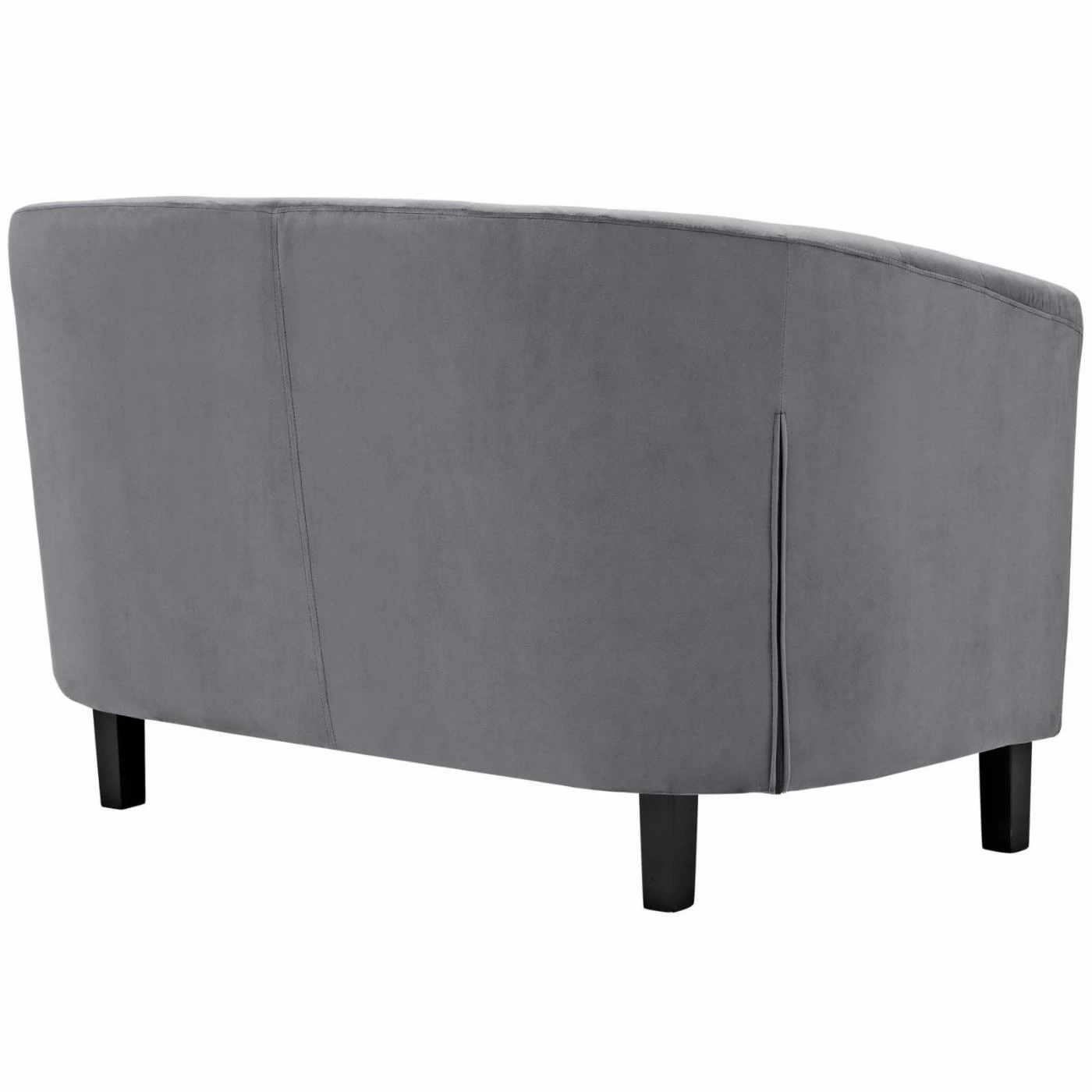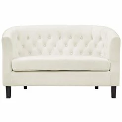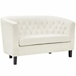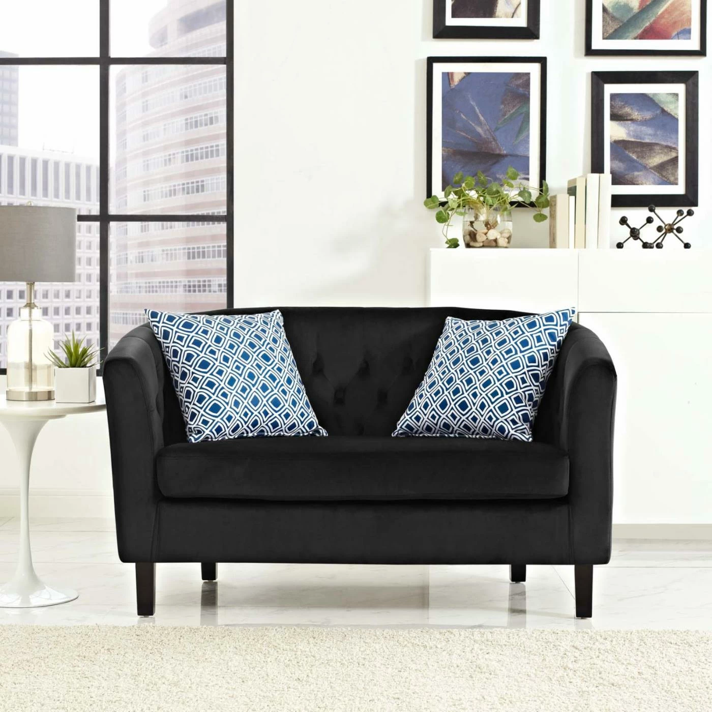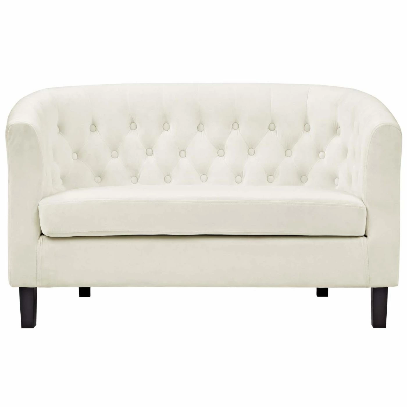 Update your seating arrangement with the elegant Modway Prospect Velvet Loveseat. With its curved back and plush foam padding, this compact loveseat offers formal style and comfortable seating for your guests. This handsome piece is upholstered in soft velvet polyester fabric with three rows of tufted buttons. Plastic foot glides on the espresso-stained wood legs make it easy to move this loveseat around without marking your floors or snagging the carpet.