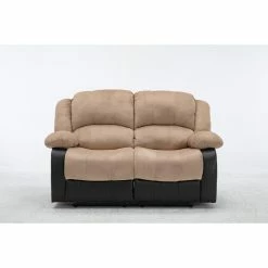 The NH Designs Champion and Faux Leather Motion Loveseat lets you relax in comfort. Crafted with a wooden frame, this sturdy loveseat features textured velvet and faux leather upholstery in brown. Featuring two reclining seats with padded armrests, seat backs, and headrests, this loveseat will take you into relaxation smoothly.