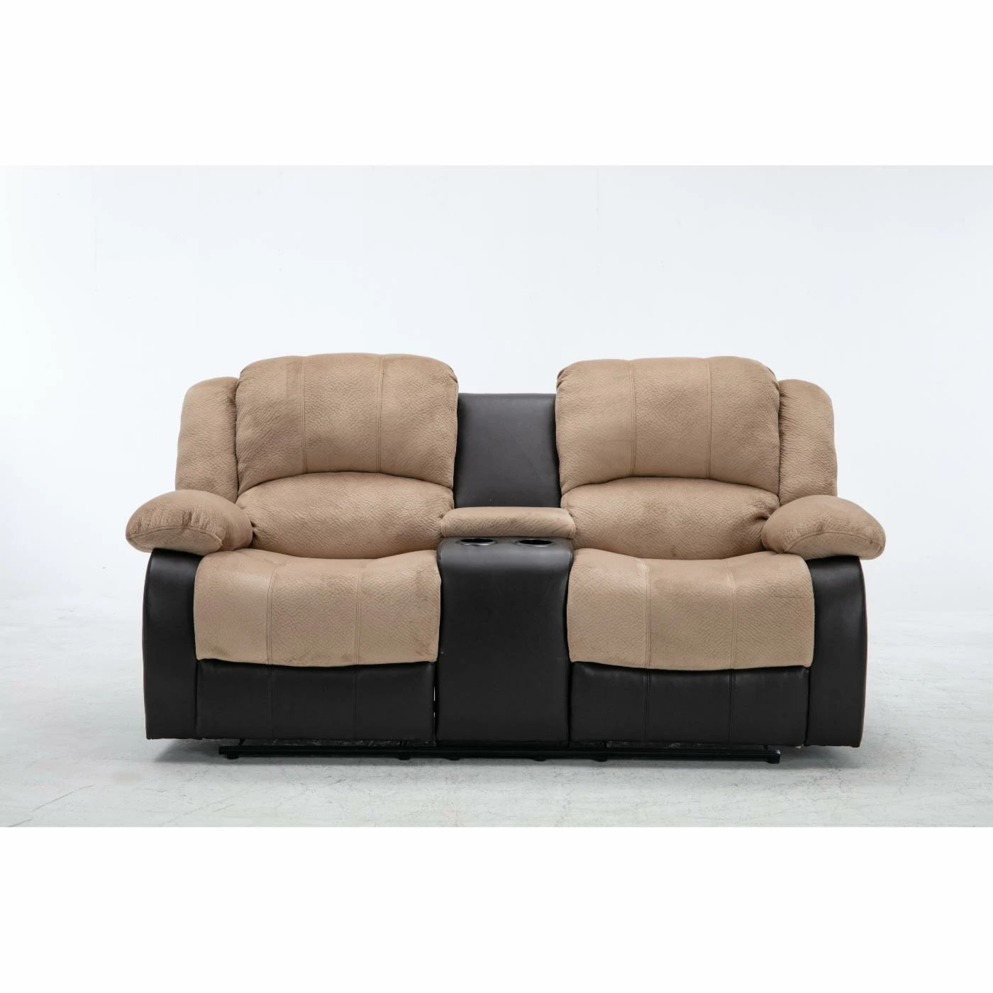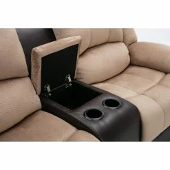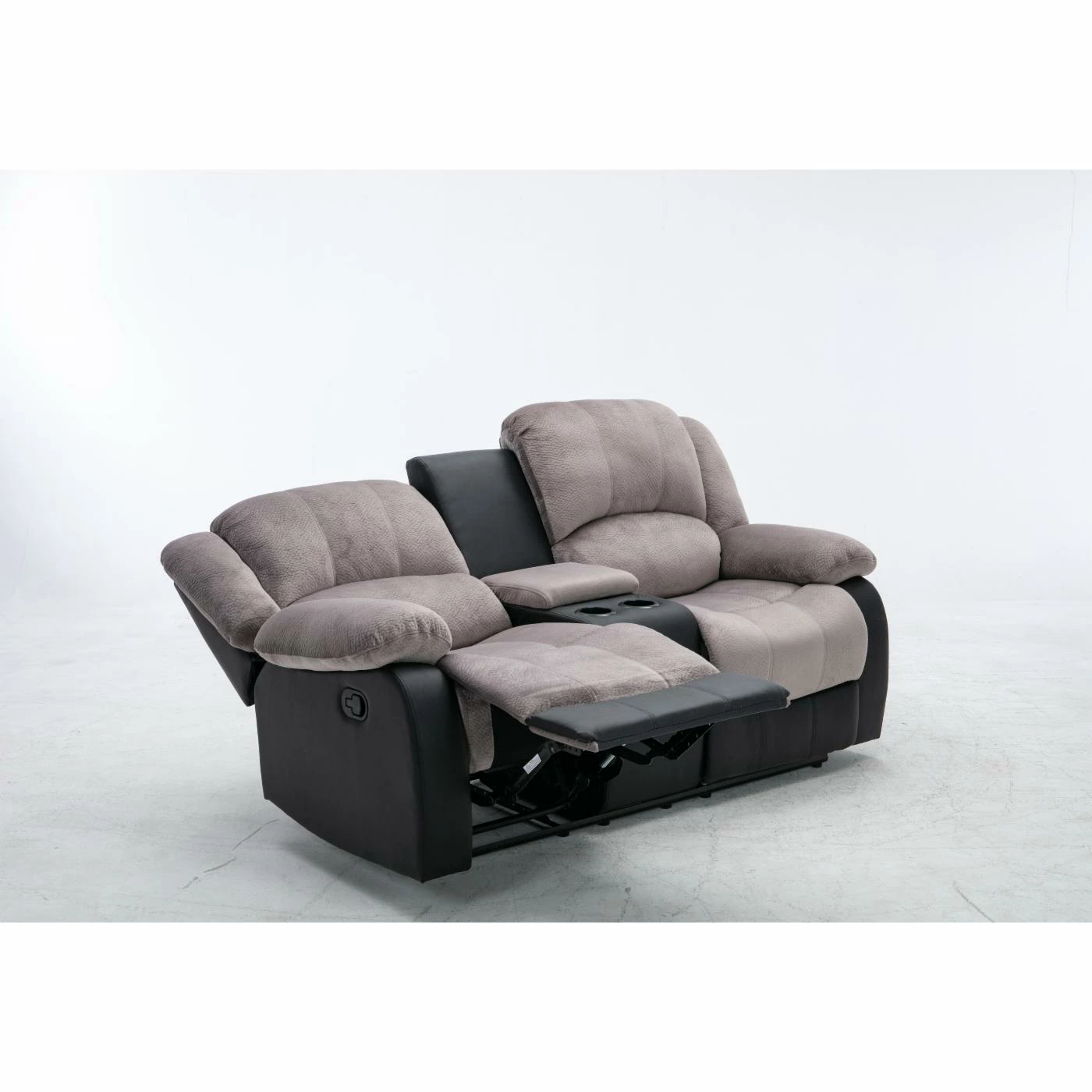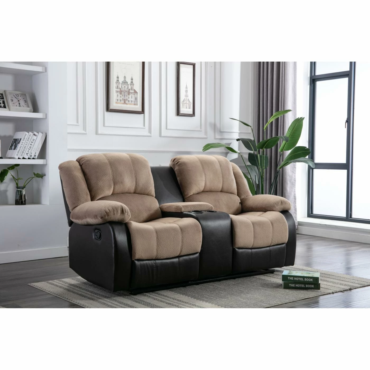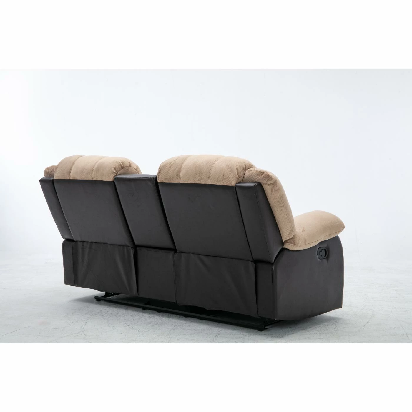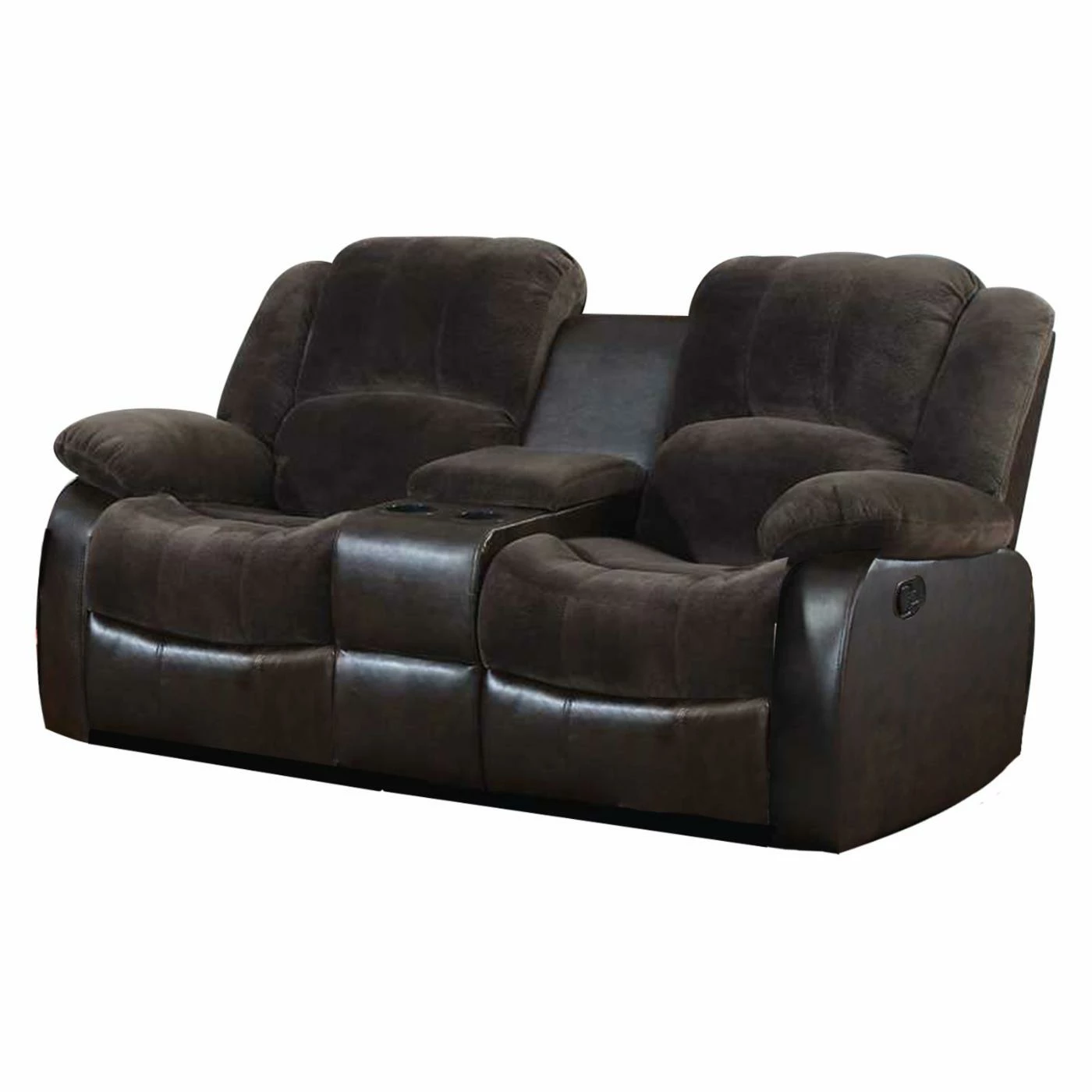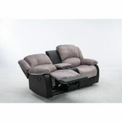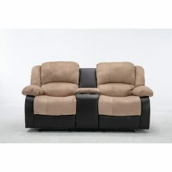 Invite the compact NH Designs Champion and Faux Leather Motion Loveseat and Console into your living room or den for ultimate comfort and relaxation. This beautiful loveseat boasts a durable wood and metal frame, wrapped with plenty of high-density foam for complete comfort. The armrests and back cushions are extra padded for a pillow-like feel. The center console makes for an extra armrest and also comes with two cup holders for your favorite frosty refreshments.