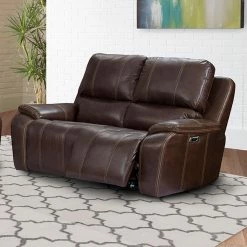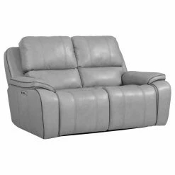 Add comfort and style to your home with the Parker House Potter Power Reclining Loveseat. This loveseat comfortably seats two people. The motorized power recline makes it easy to adjust the angle of your seat. All you have to do is push a button. Power headrests provide comfort and support for your head and neck. Upholstered in top grain leather, this seat features luxury foam cushions. A USB port is also included. Choose from available fabric colors to find the loveseat that works best for your home.