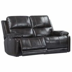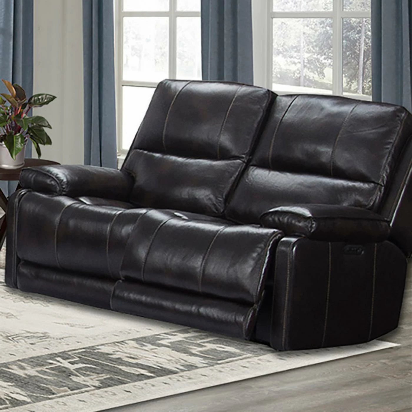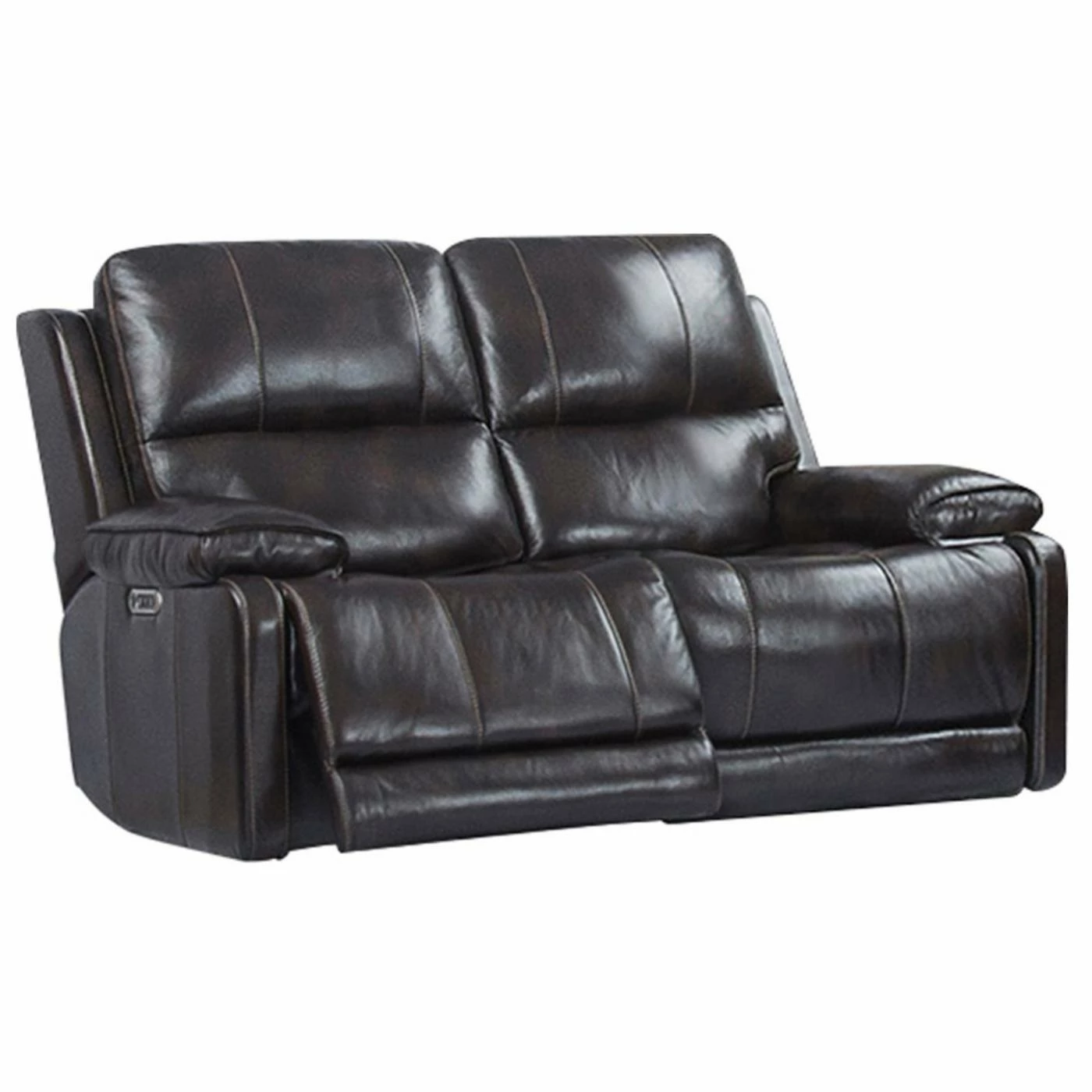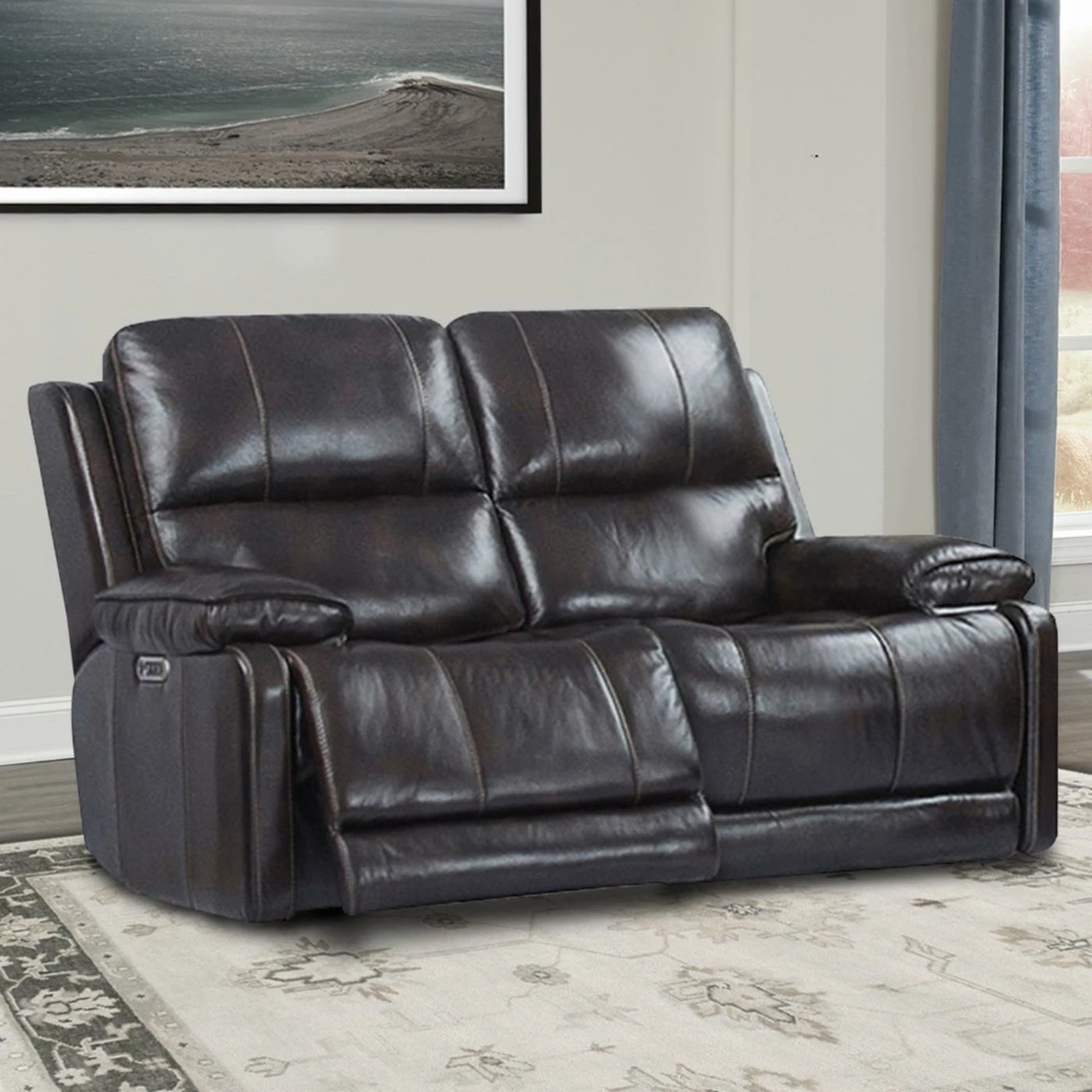Relax in style with the Parker House Thompson Havana Power Reclining Loveseat. Upholstered in top grain leather, this sleek dark brown loveseat is sure to add sophisticated style to your living room. The motorized power recline mechanism makes it easy to adjust your seat. All you have to do is press a button. A USB port is also included on the control panel. Vertical seams add visual interest to the piece.