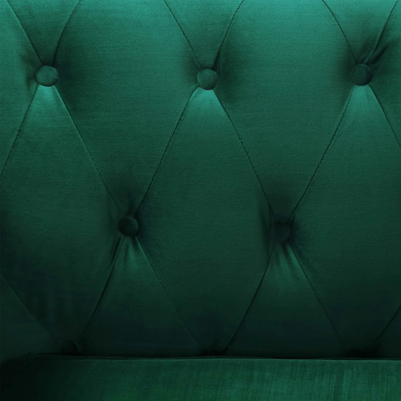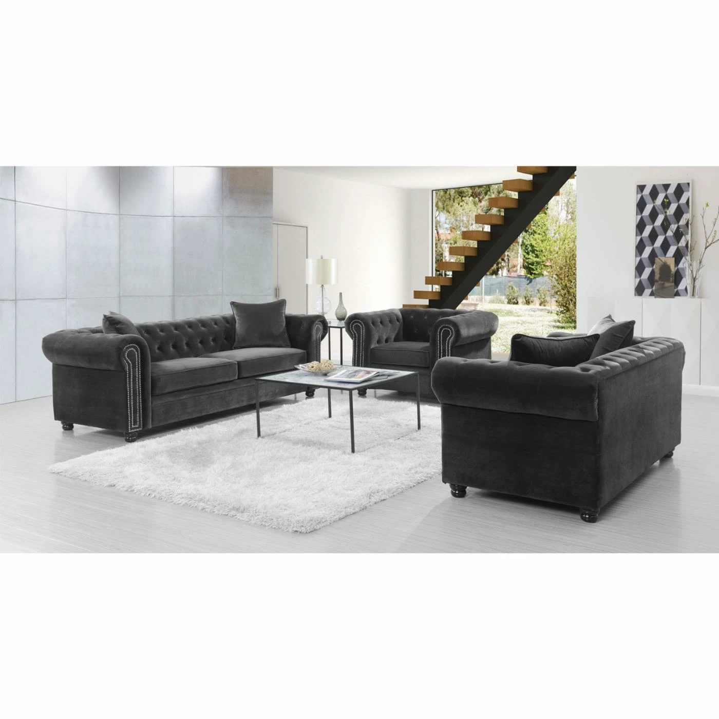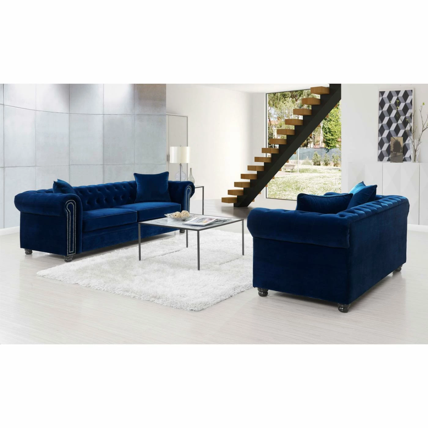 Sink into comfort with the Picket House Furnishings Gramercy Loveseat. The classic diamond tufting on the back of this piece adds an air of sophistication and elegance. The two coordinating pillows bring the look together. The classic nailhead trim on the front of this loveseat nicely complements the round turned feet. Choose from available colors. Some assembly is required.