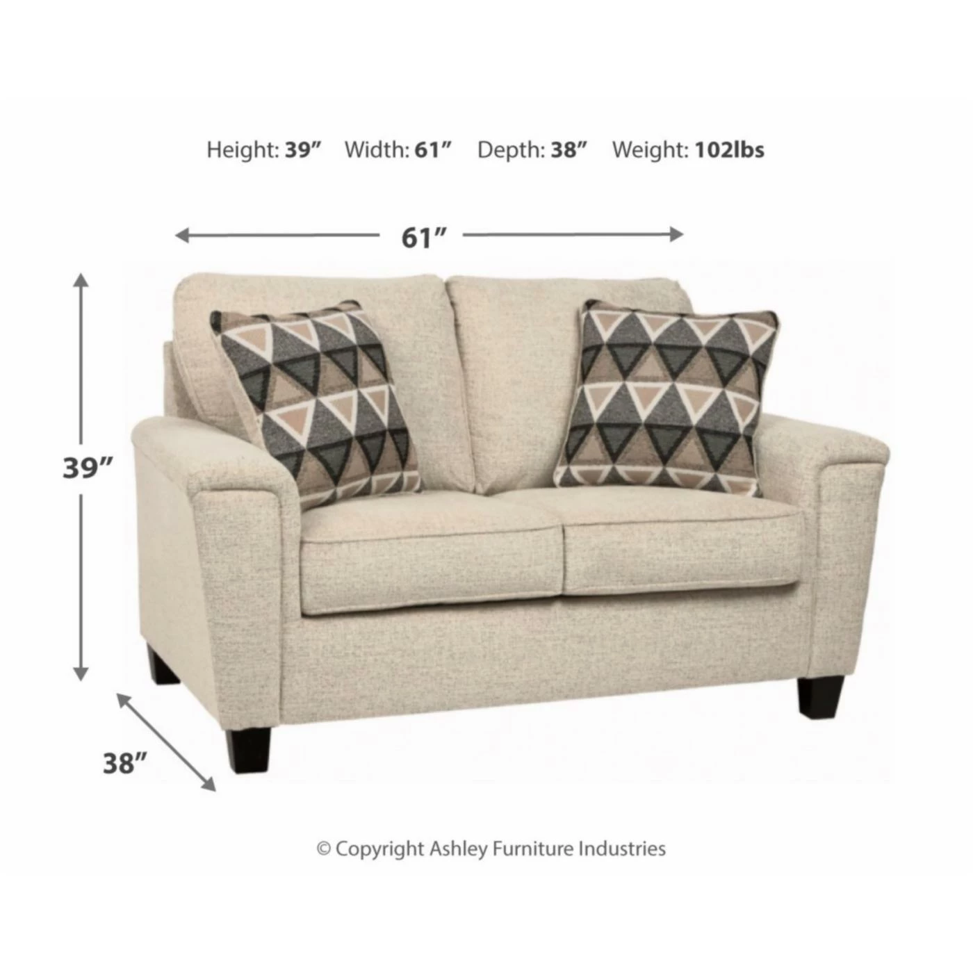 - 61W x 38D x 39H in.