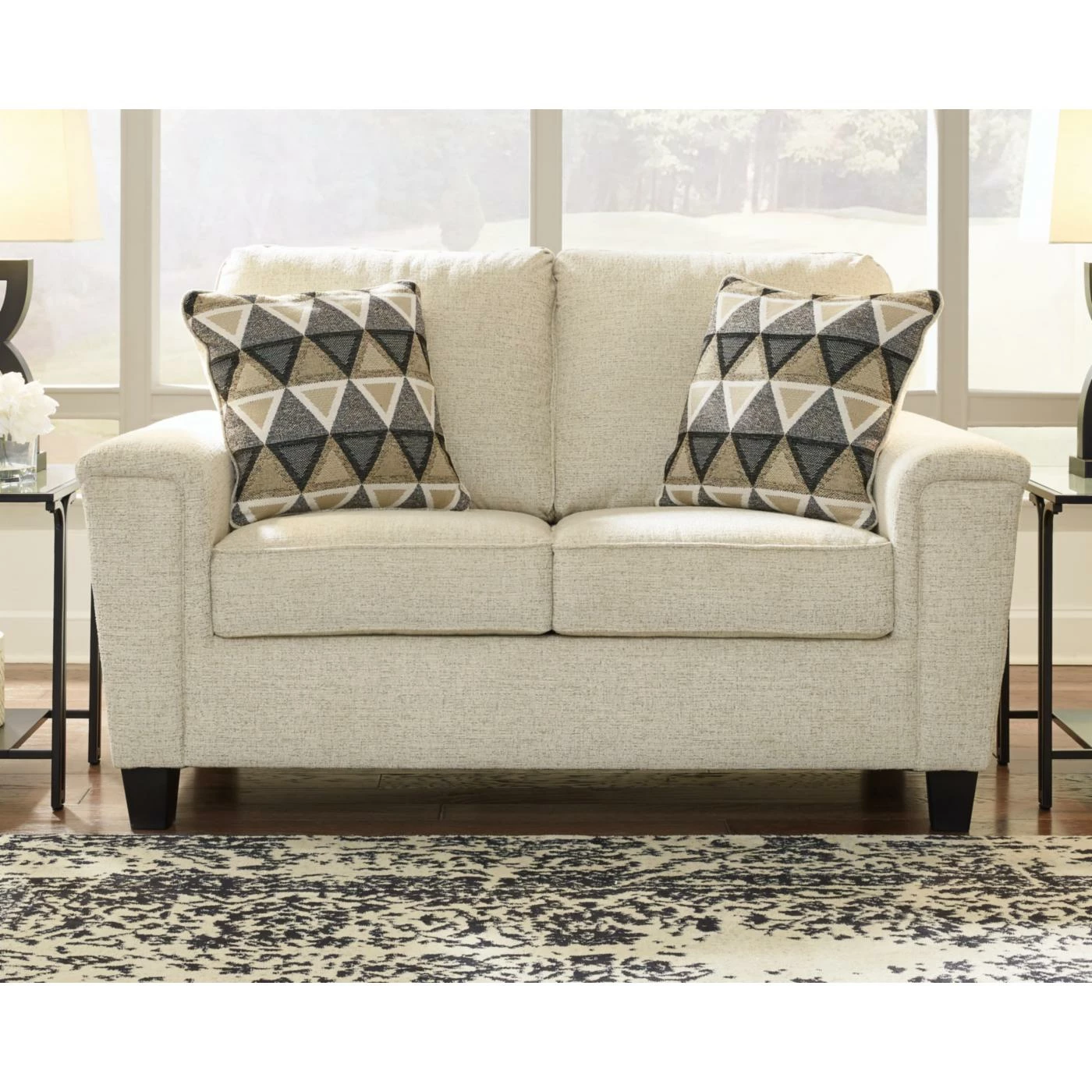 - 2 throw pillows included