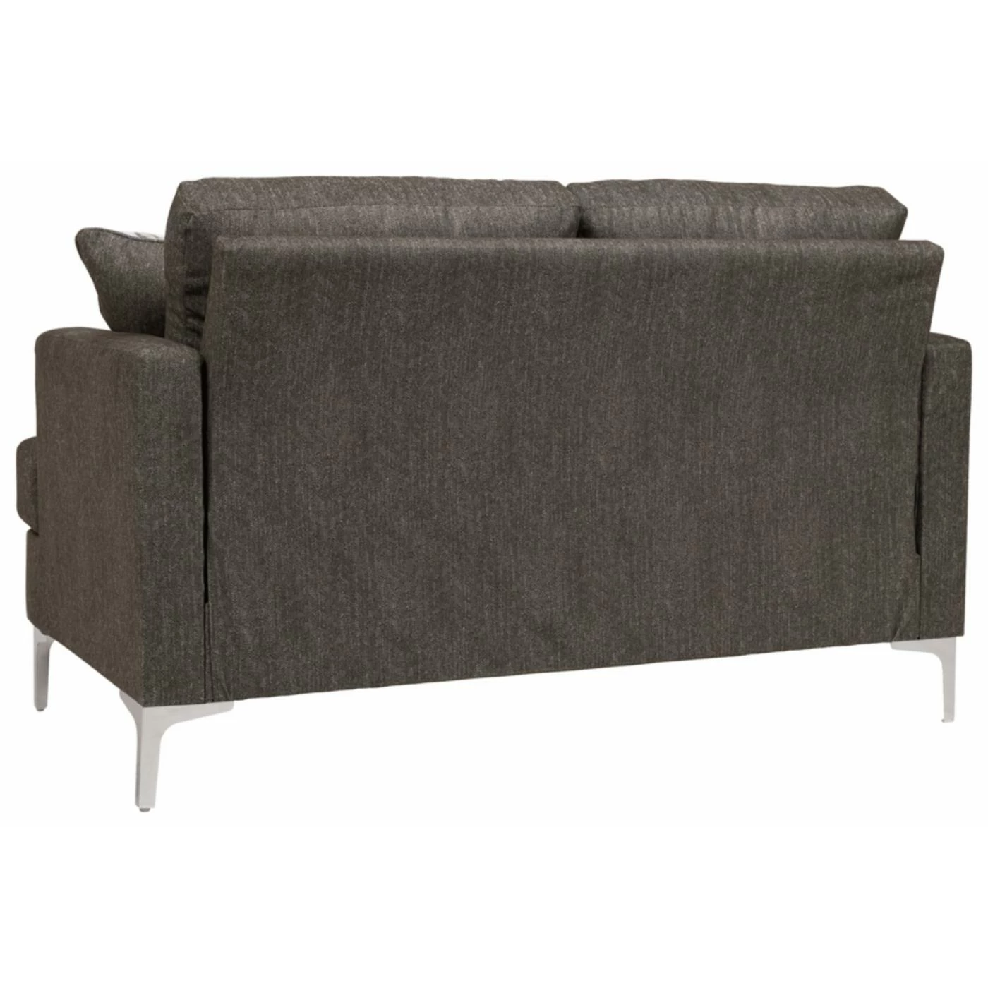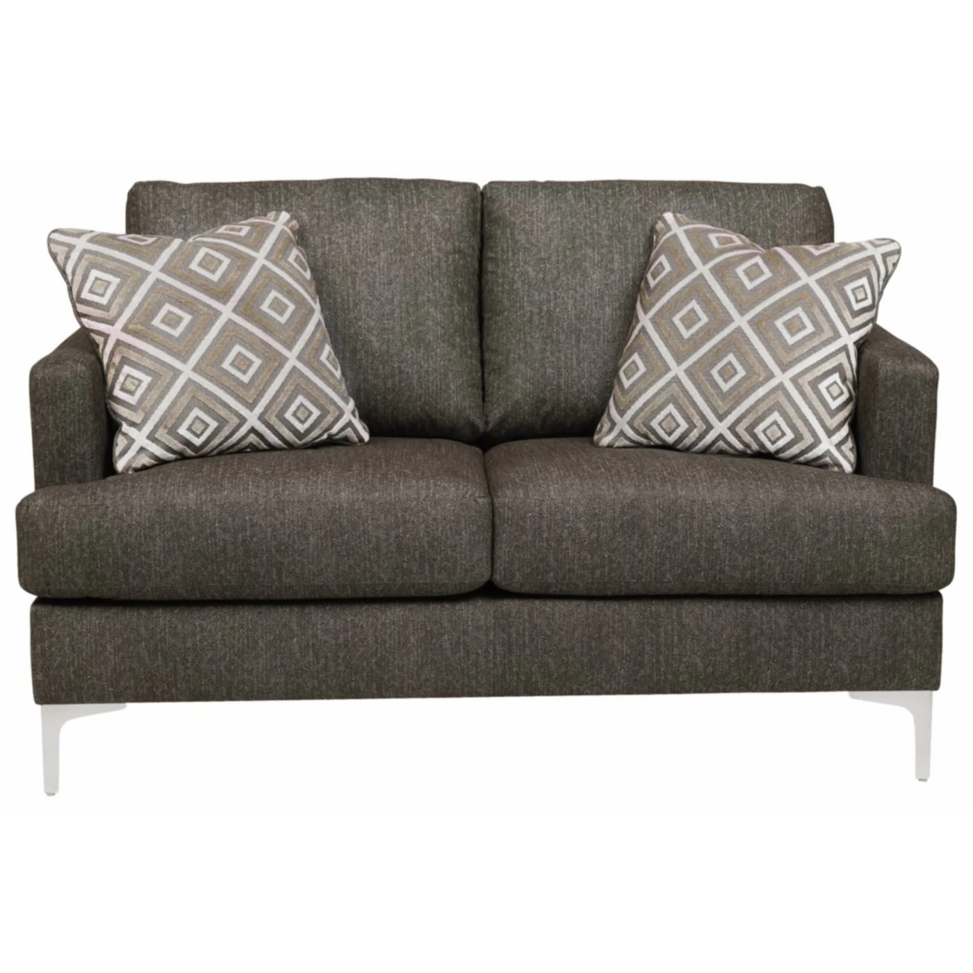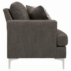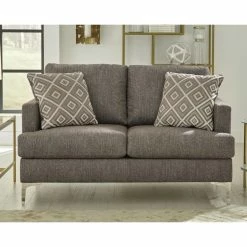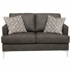 - High-resiliency foam cushions wrapped in thick poly fiber over sinuous spring system