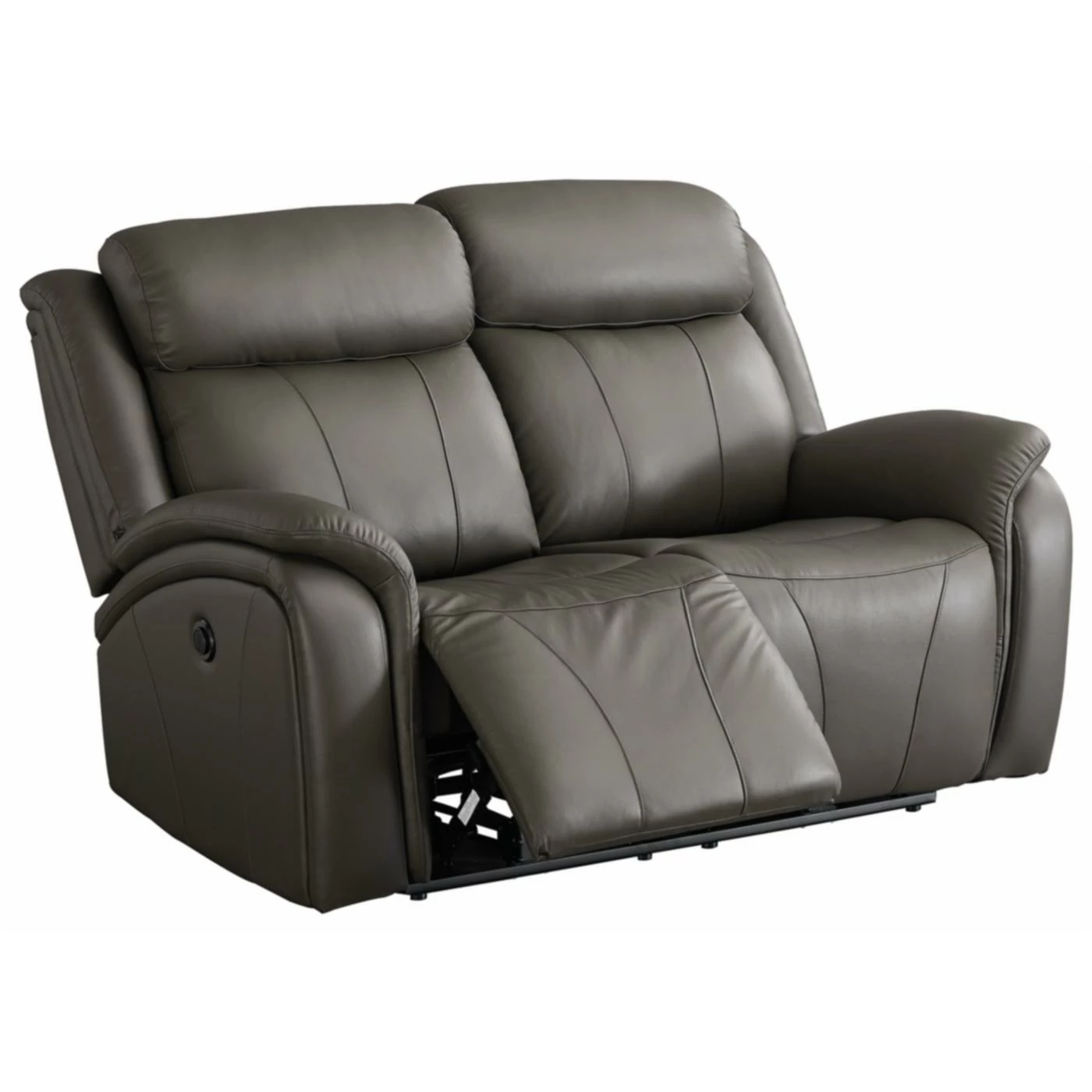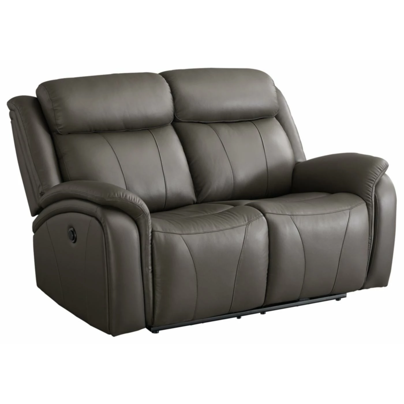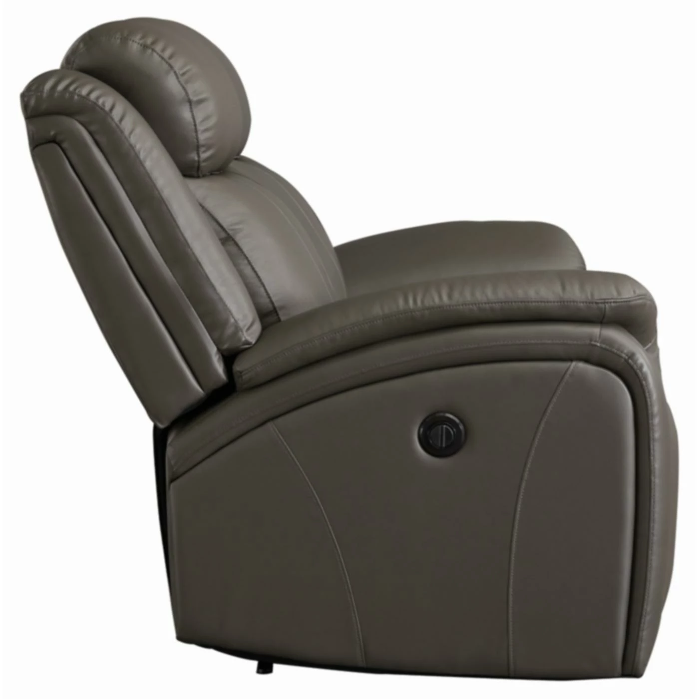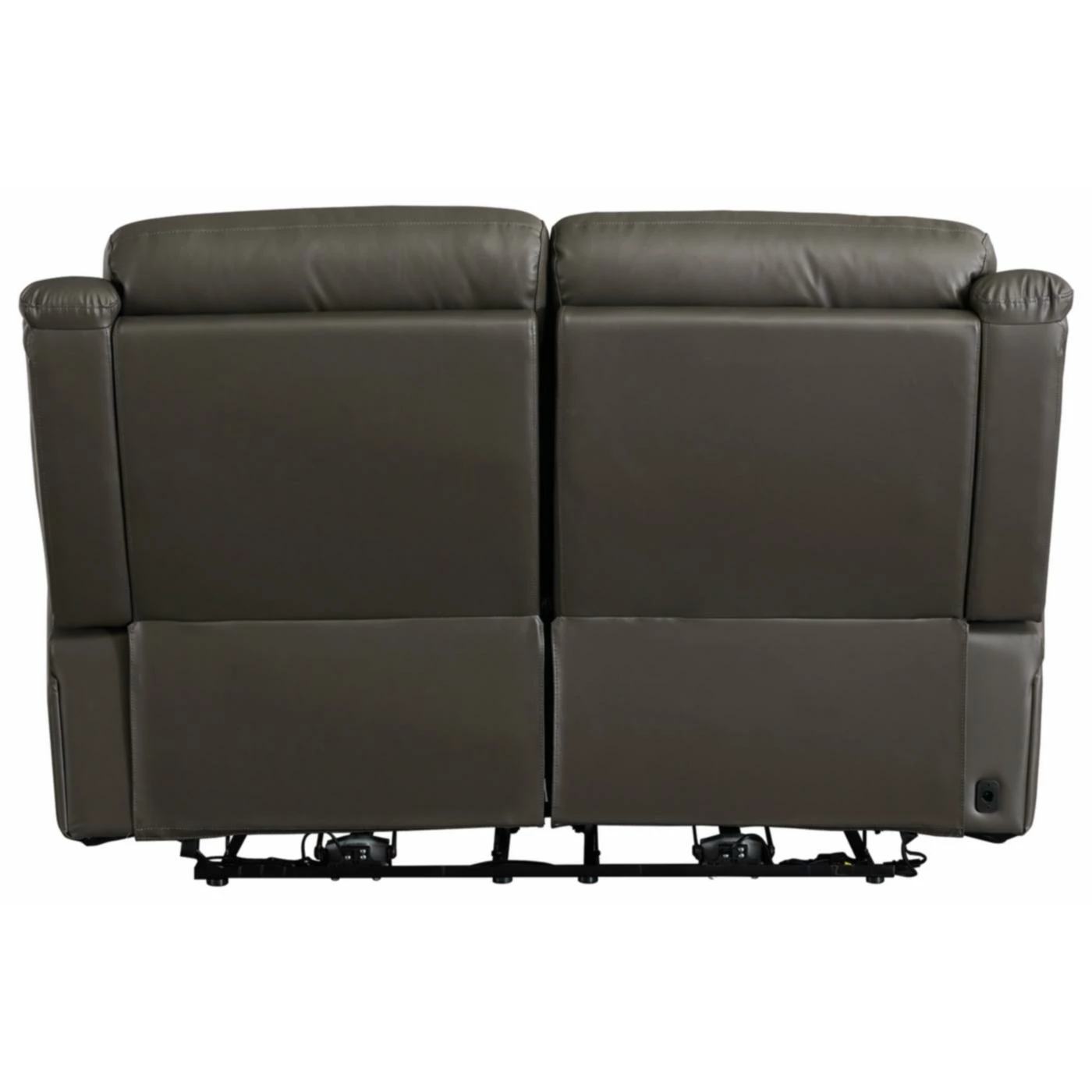 - Dark gray leather interior seating; vinyl/polyester exterior upholstery