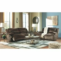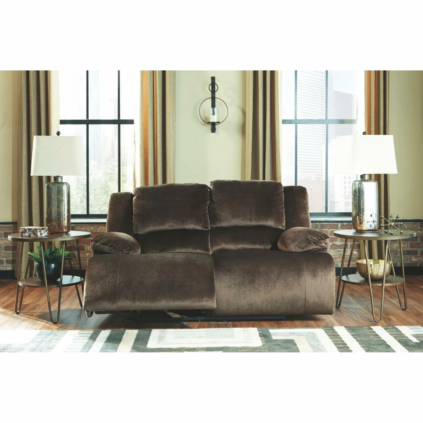 Get ready to snuggle up on the Signature Design by Ashley Clonmel Reclining Loveseat. This reclining loveseat fits two with ease, and it keeps you comfortable while you’re seated. It’s padded with plump cushioning in the back, headrest, arms, and seat and then upholstered in polyester microfiber. This fabric is easy to clean and soft to the touch. Choose from available colors and reclining mechanisms.