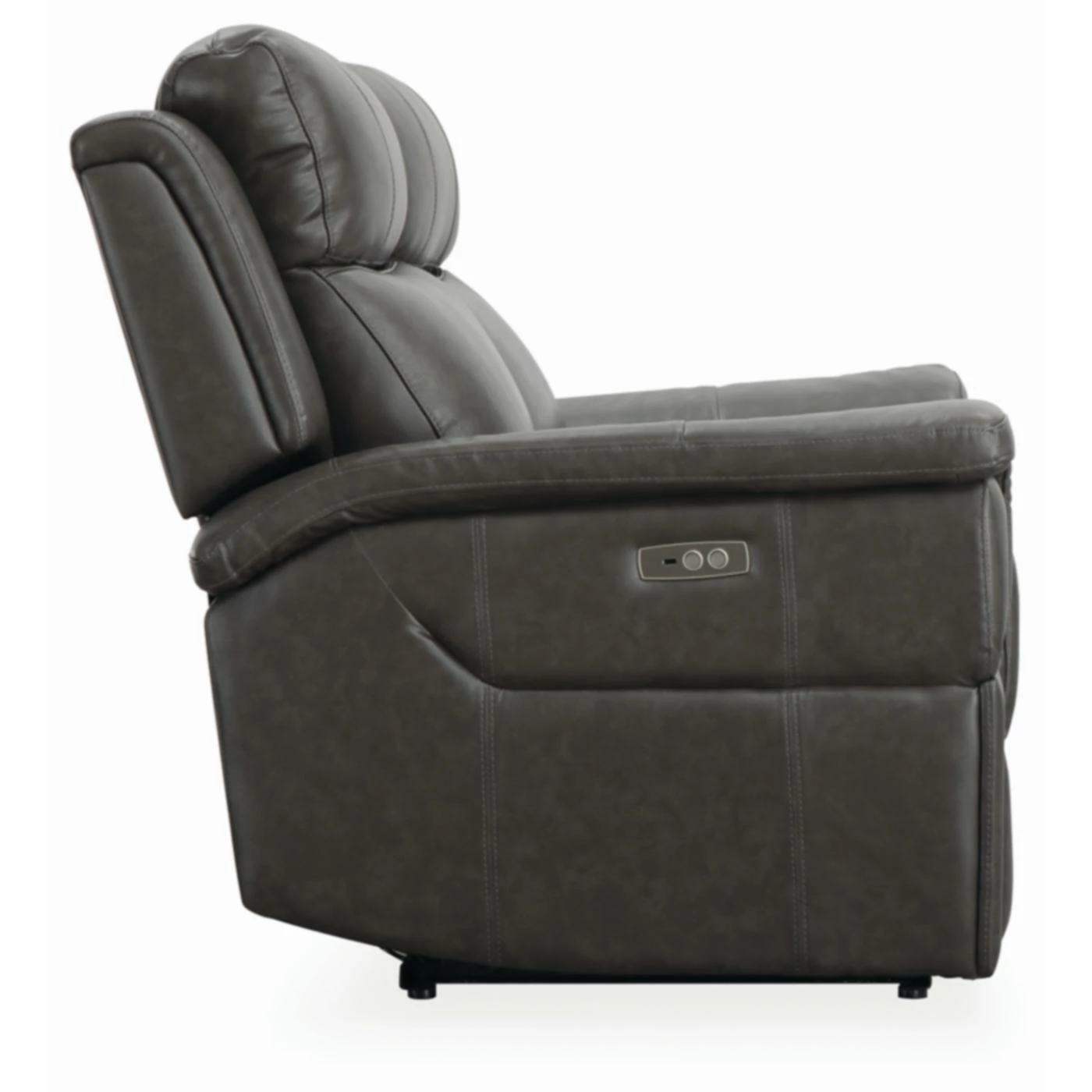 - Gray leather interior seating; vinyl/polyester exterior upholstery