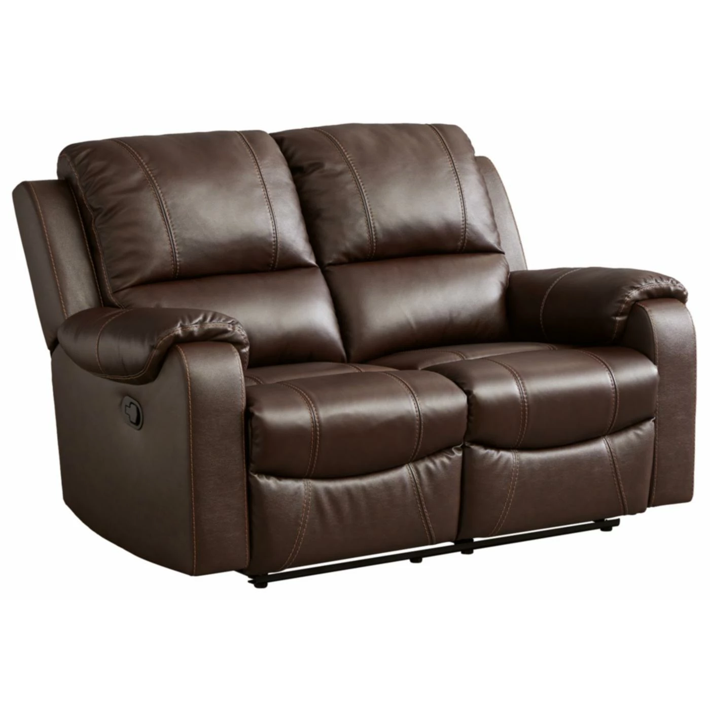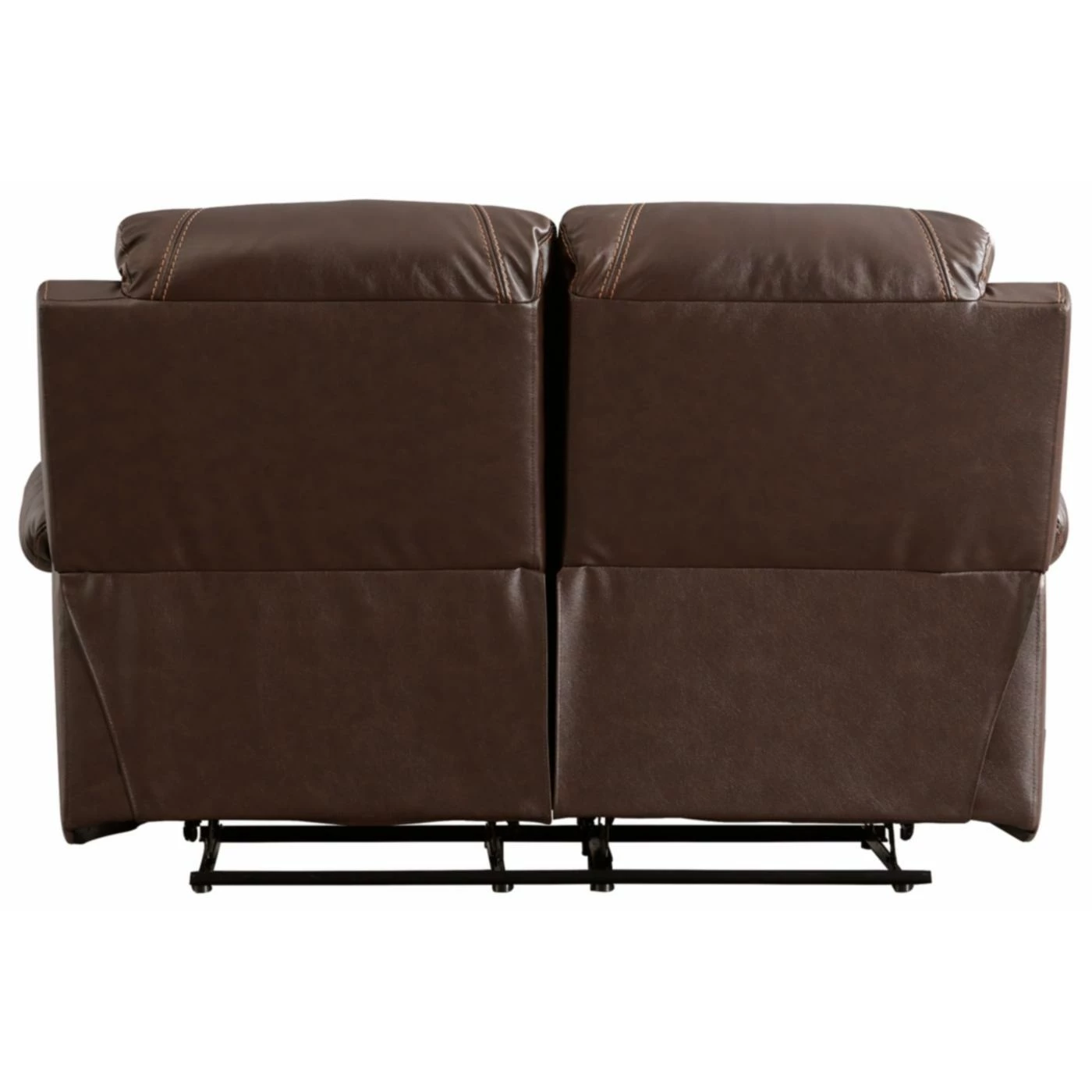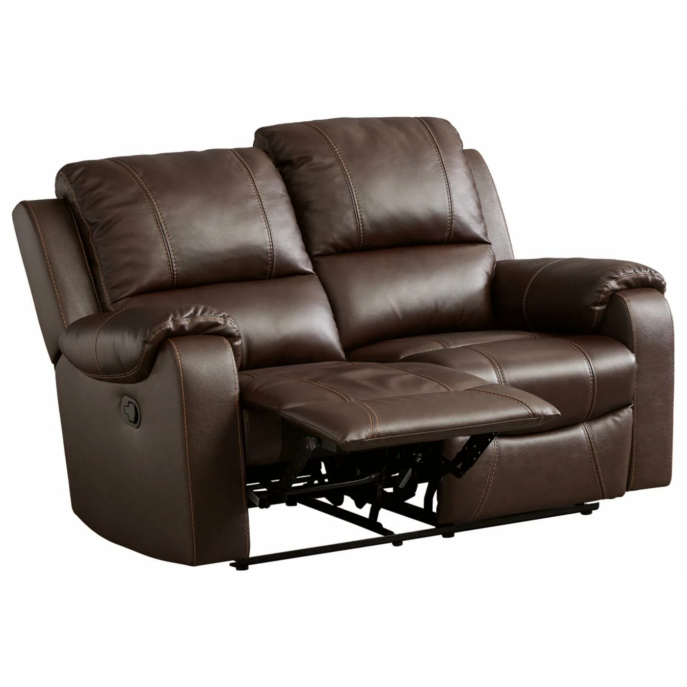 - Leather throughout the seating area, inside back and armrests; faux leather covers remaining areas