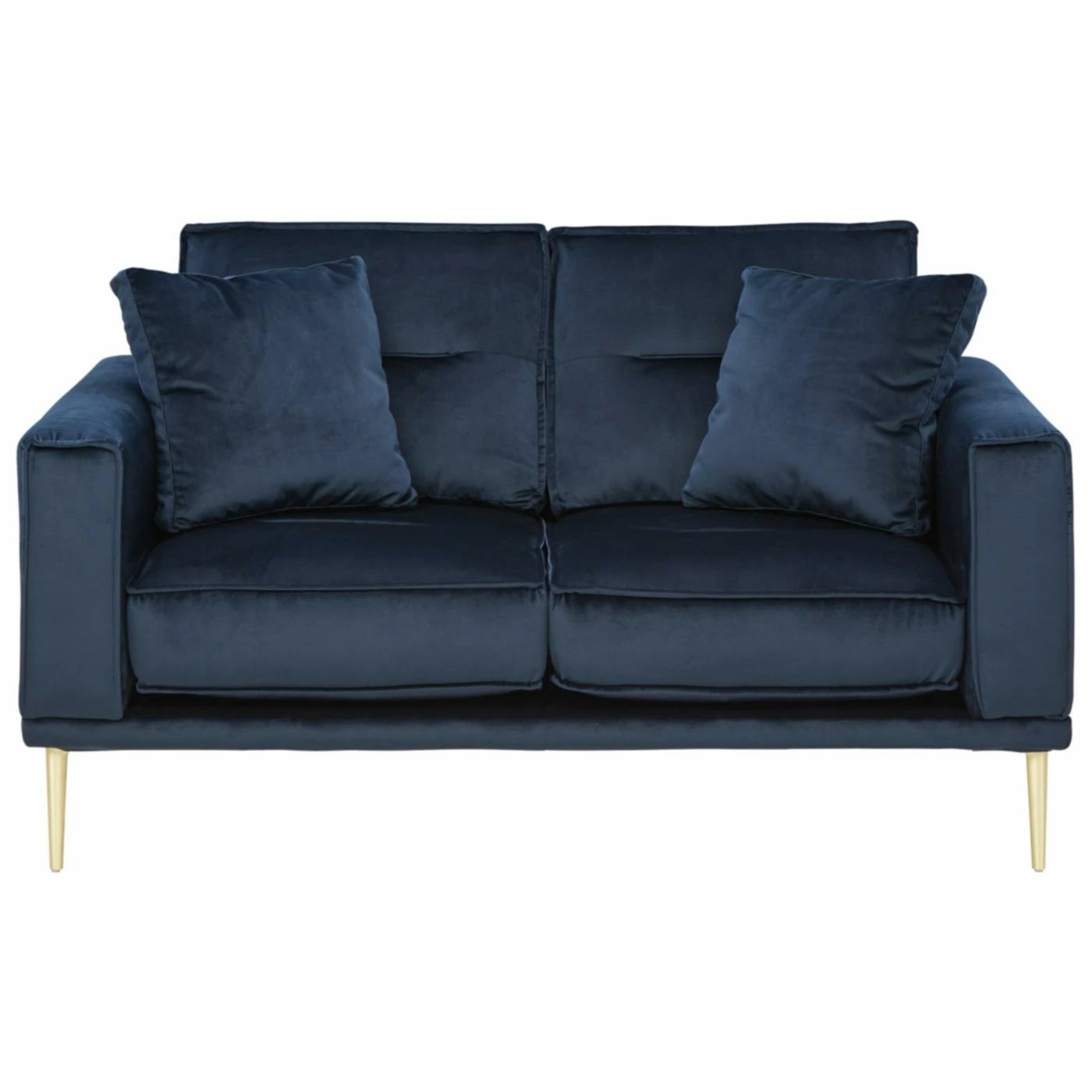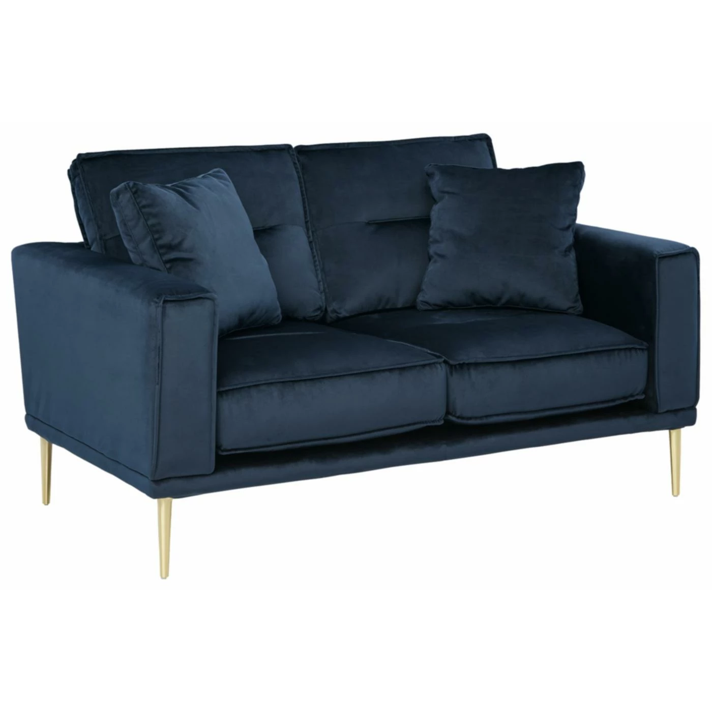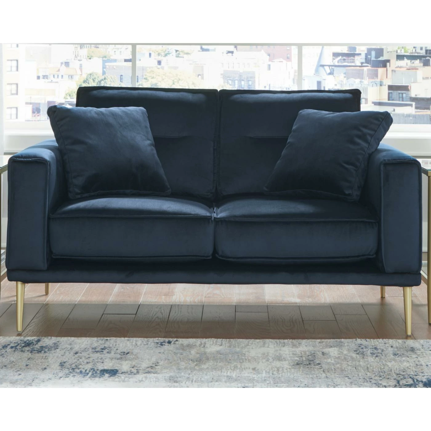 - Metal legs with brass-tone finish