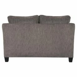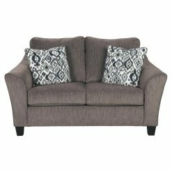 Create a comfortable place for two in your living room or bedroom with the Signature Design by Ashley Nemoli Loveseat. This simple and stylish loveseat features plush seat and back cushions that are built around a high-resiliency foam core. Tailored details draw the eye down to the wood-tone feet elevating the piece. A pair of patterned accent pillows complete the design of this loveseat.