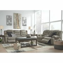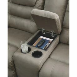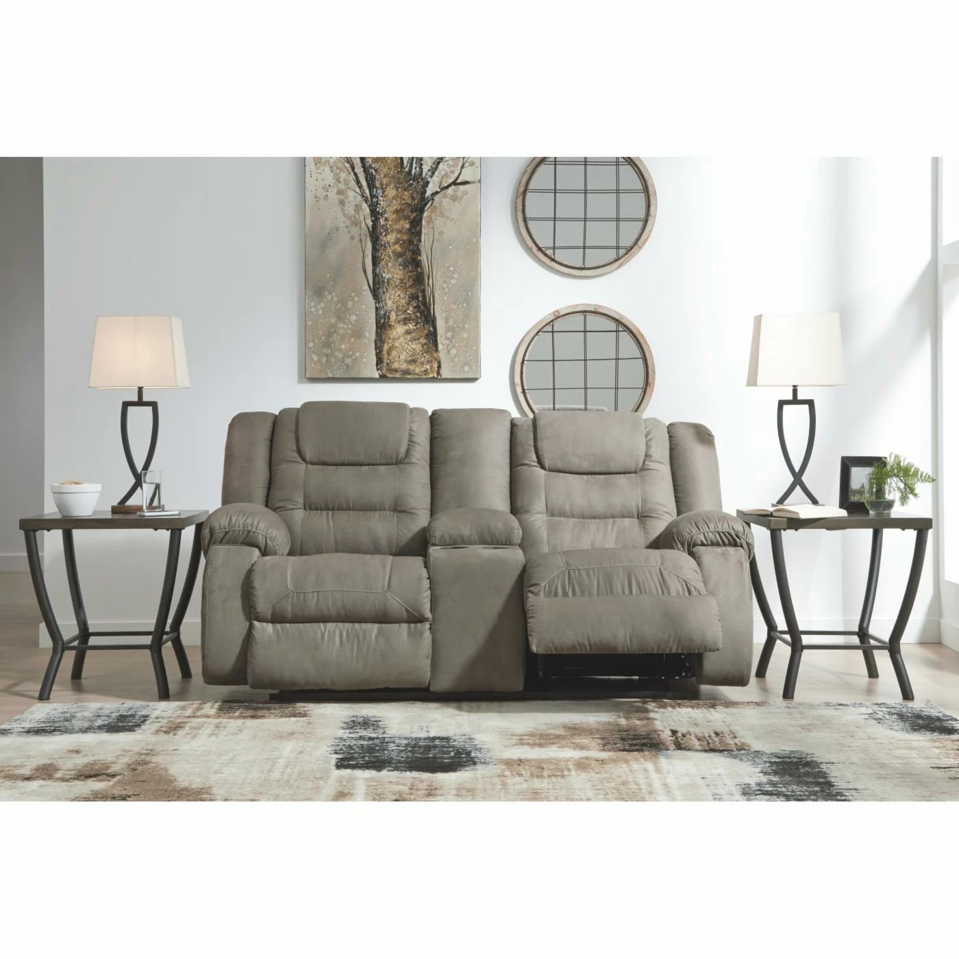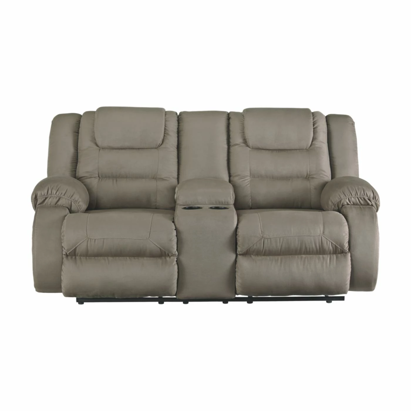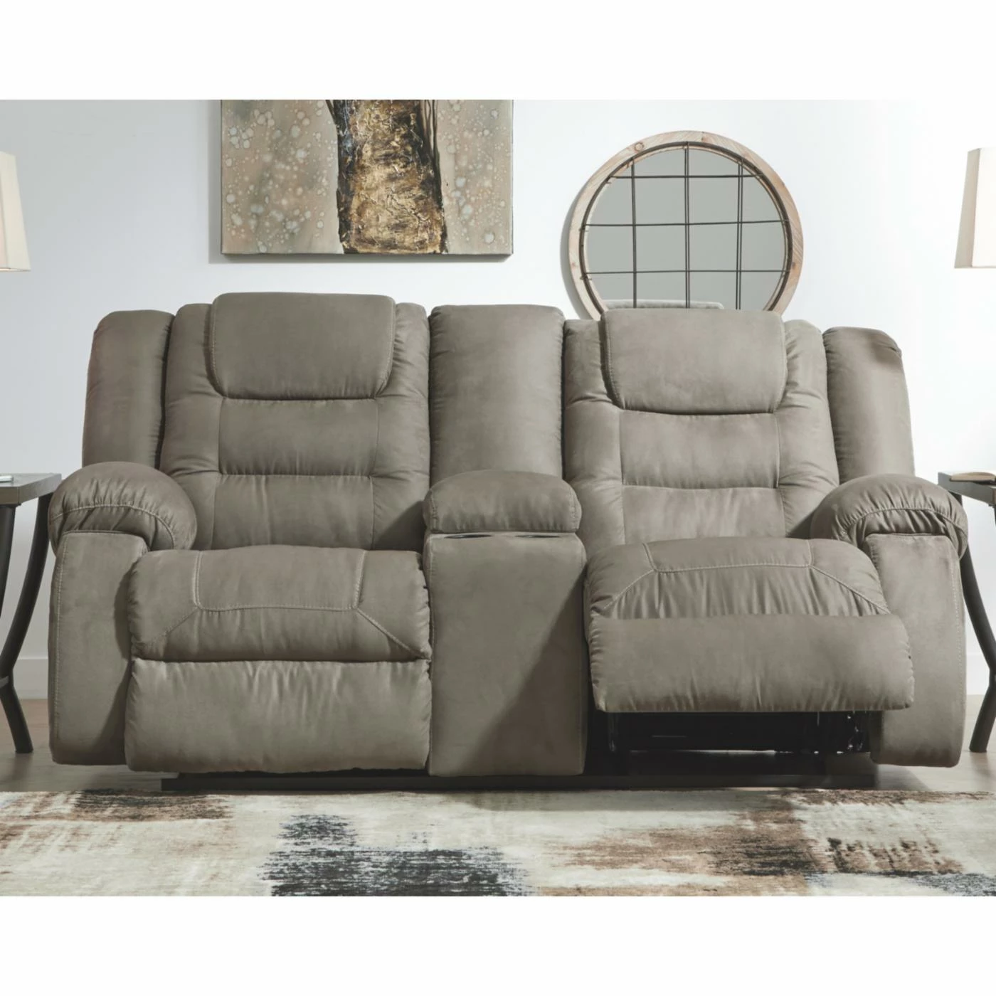 When you’re off the clock, get off your feet and into the Signature Design by Ashley Segburg Reclining Loveseat.The center console offers storage for reading material, remotes, and two drinks. We don’t know which is more comfort-inducing: the plush, supportive back, or the soft, polyester fabric. Smart stitching creates comfort zones that don’t allow cushioning to shift or settle. Levers on each side operate the dreamy recline functionality.