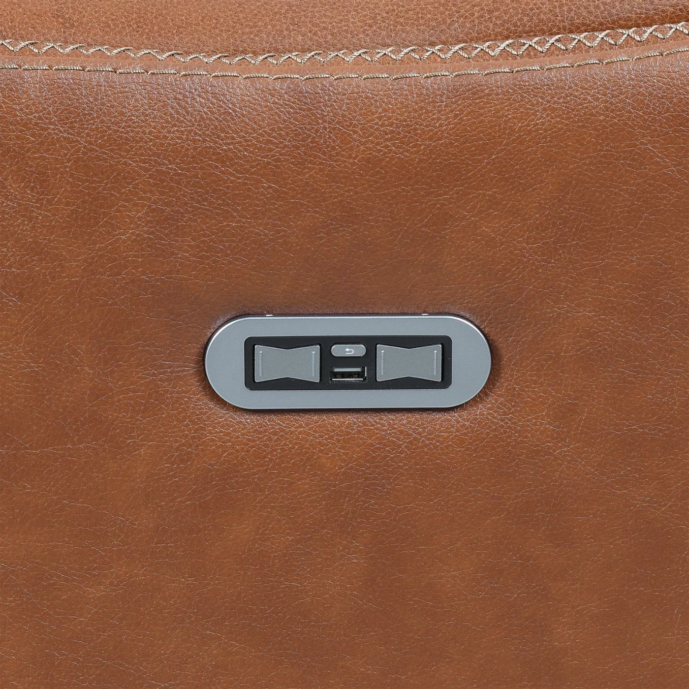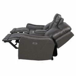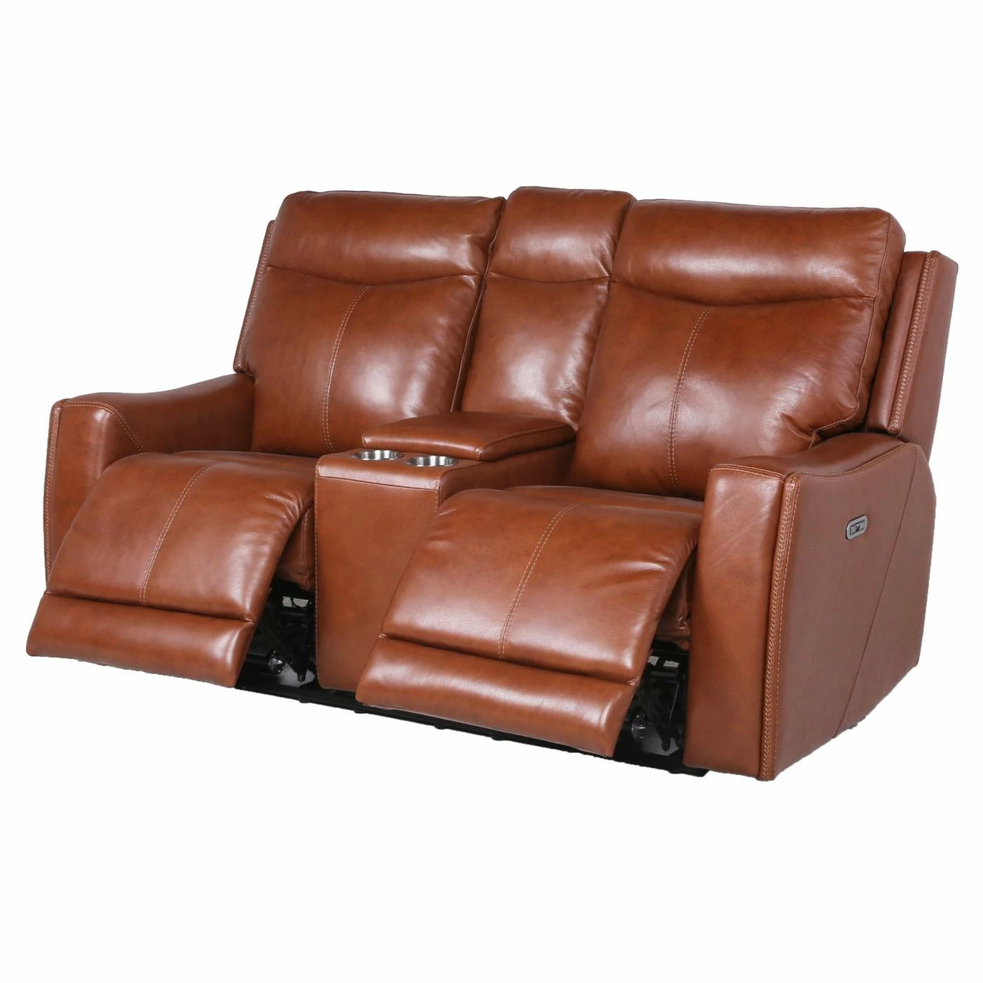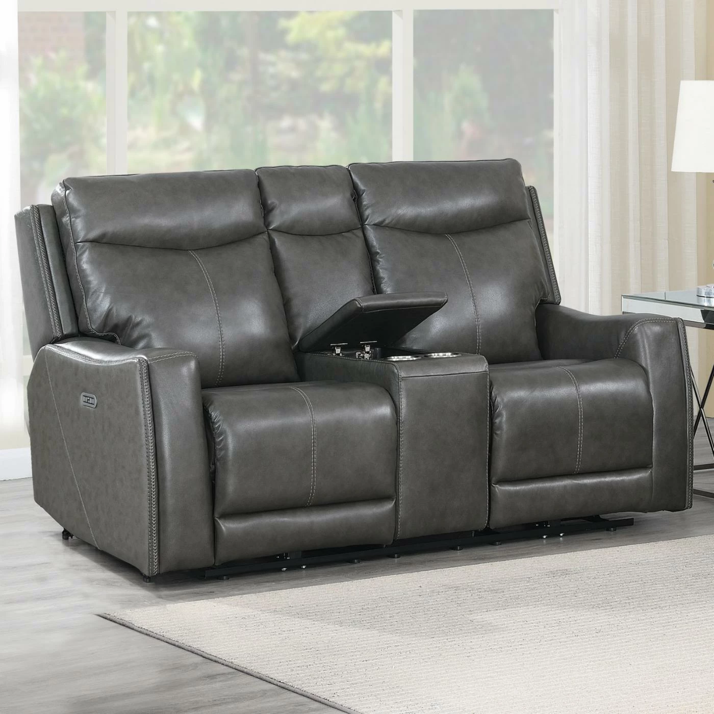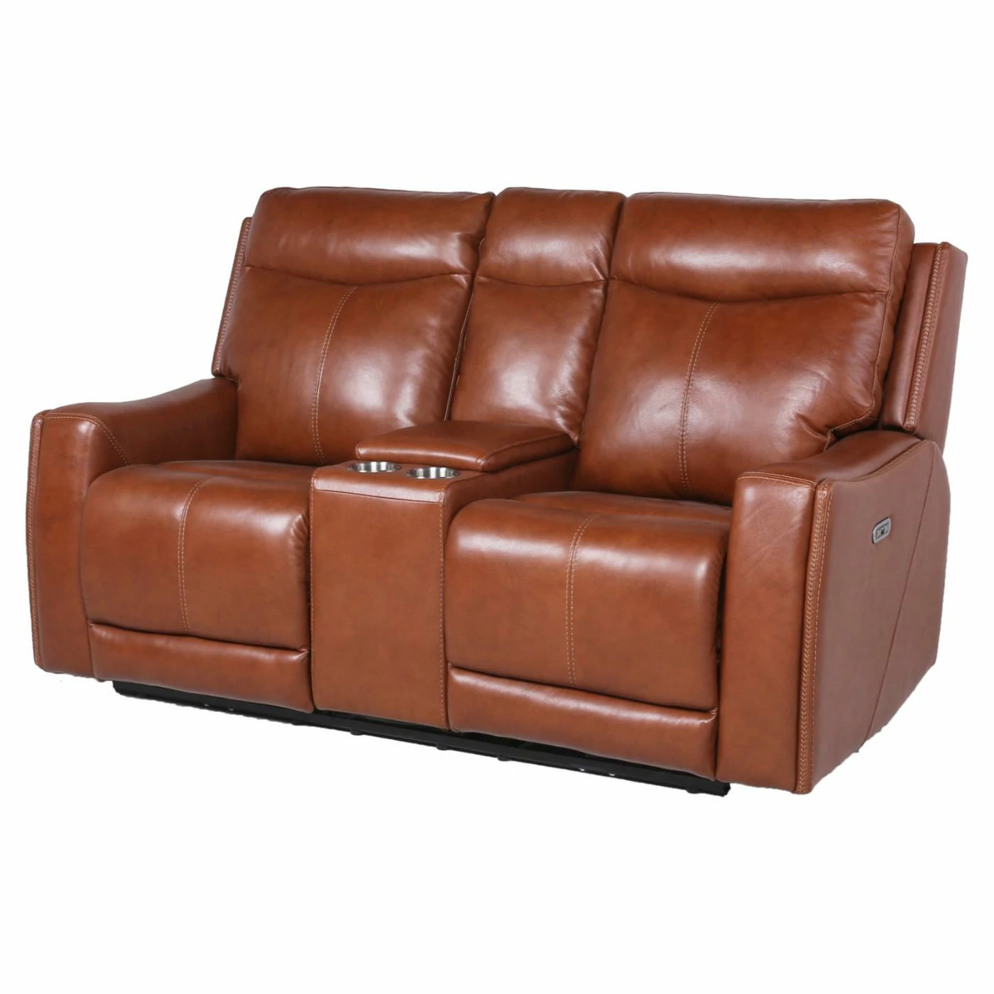 Expand the seating in your home with the Steve Silver Co. Natalia Power Recliner Console Loveseat. This easy-to-clean settee is crafted from genuine top grain leather on the seats and head rests as well as vegan leather for the sides and back. The middle console offers cup holders and storage for electronics, drinks, snacks, or anything else you can fit. A convenient USB port allows you to charge electronics while you’re watching a movie or hanging out with friends, and the power reclining mechanism makes it easier than ever to relax after a long day. Some assembly required.