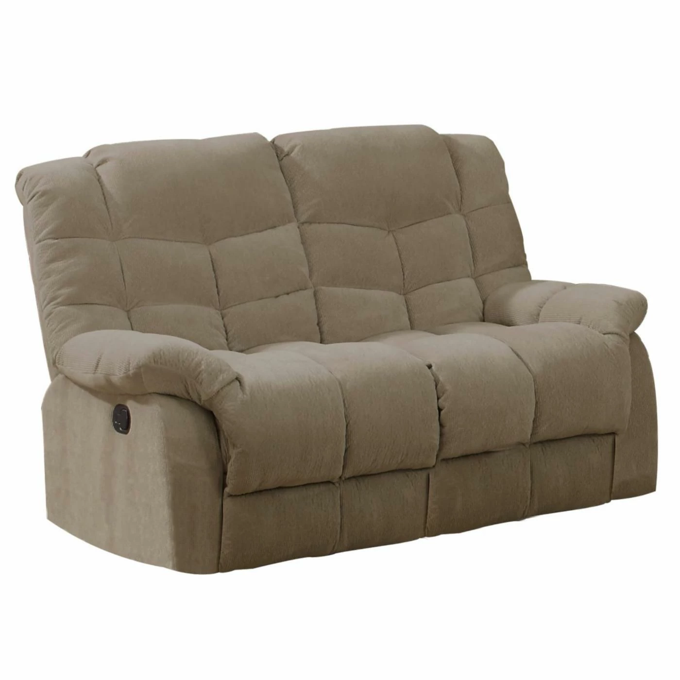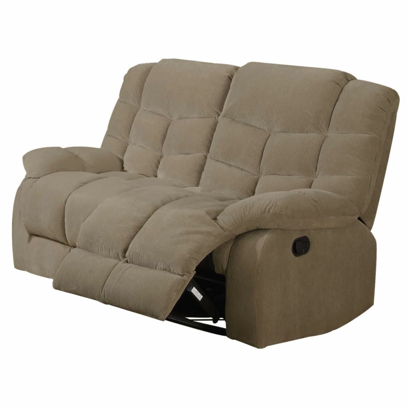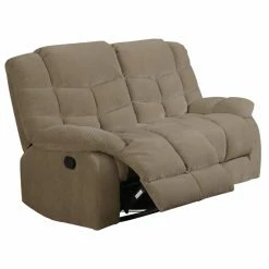 The Sunset Trading Heaven On Earth Reclining Loveseat – Tan features corduroy upholstery for casual charm. It has a hardwood frame with Dacron layer over pocket coil seat cushion. The seating and back have sinuous heavy-duty no sag springs. This reclining loveseat is detailed with tufting and comfy pillow-top arms.