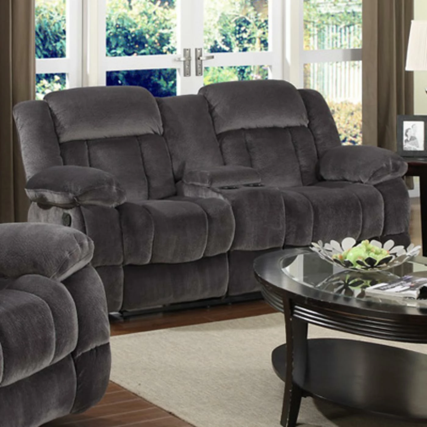 The Sunset Trading Madison Reclining Loveseat – Charcoal Blue / Gray features two reclining seats for two times the relaxation. This loveseat is upholstered in an ultra soft Charcoal Blue and Gray micro suede material. Both seats have aΒ reclining feature to maximize your comfort. It’s built on a hardwood frame with Dacron wrapped pocket coil seating and sinuous heavy-duty no sag springs.