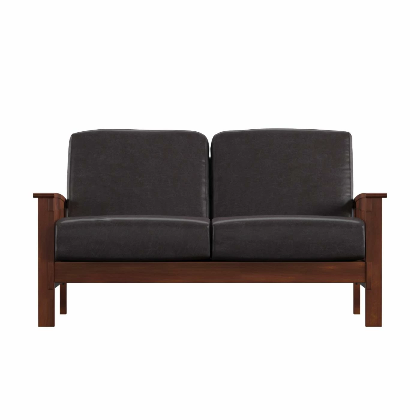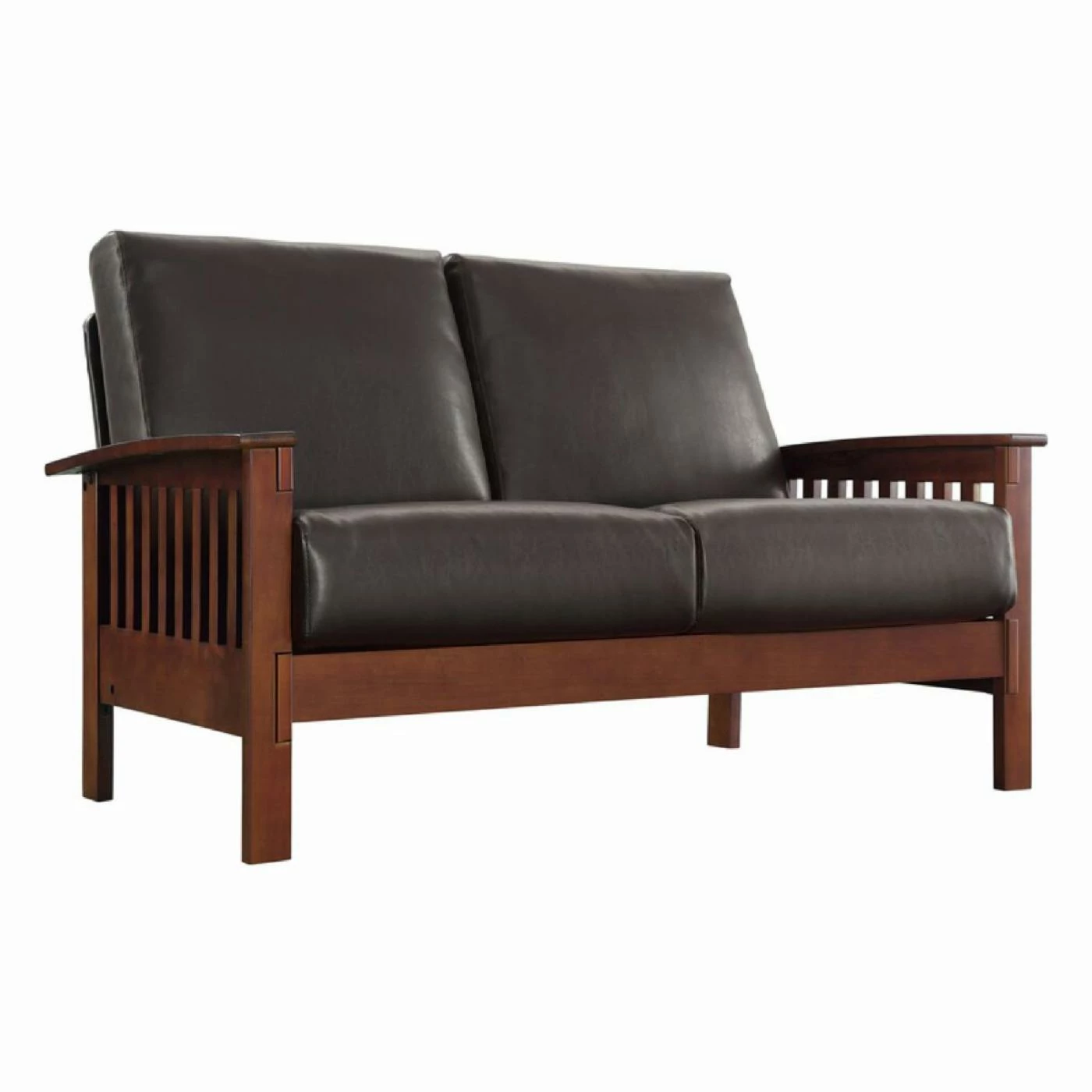 The brown bi-cast vinyl construction of the Kaitlin LoveseatΒ takes its mission styling into the realm of luxurious contemporary charm.This loveseat is constructed with premium poplar wood and comes with comfy bi-cast vinyl cushions. Coordinating pieces are available to create a complete look.